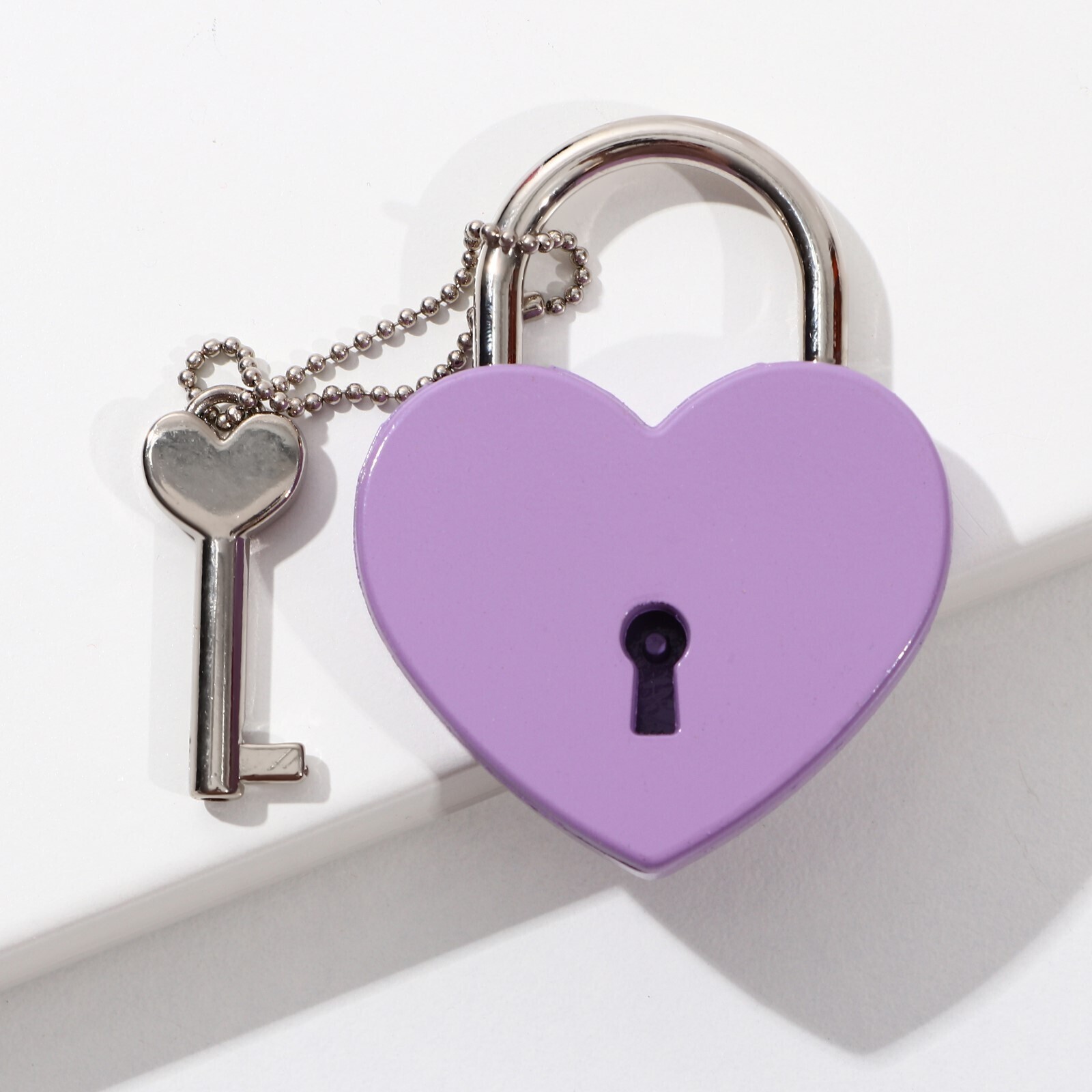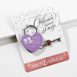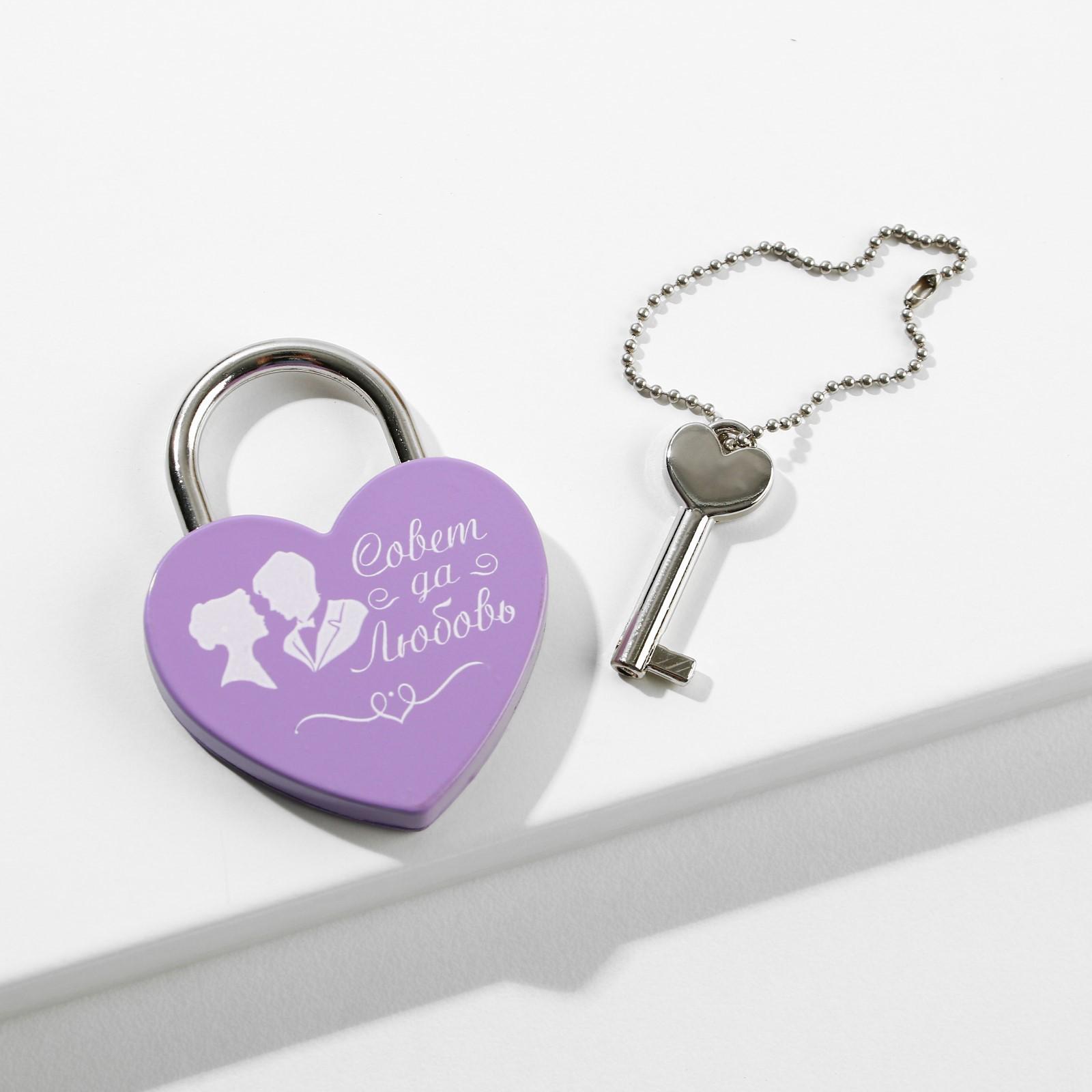 Замок свадебный с ключом «Совет да любовь», с белым нанесением, сиреневый