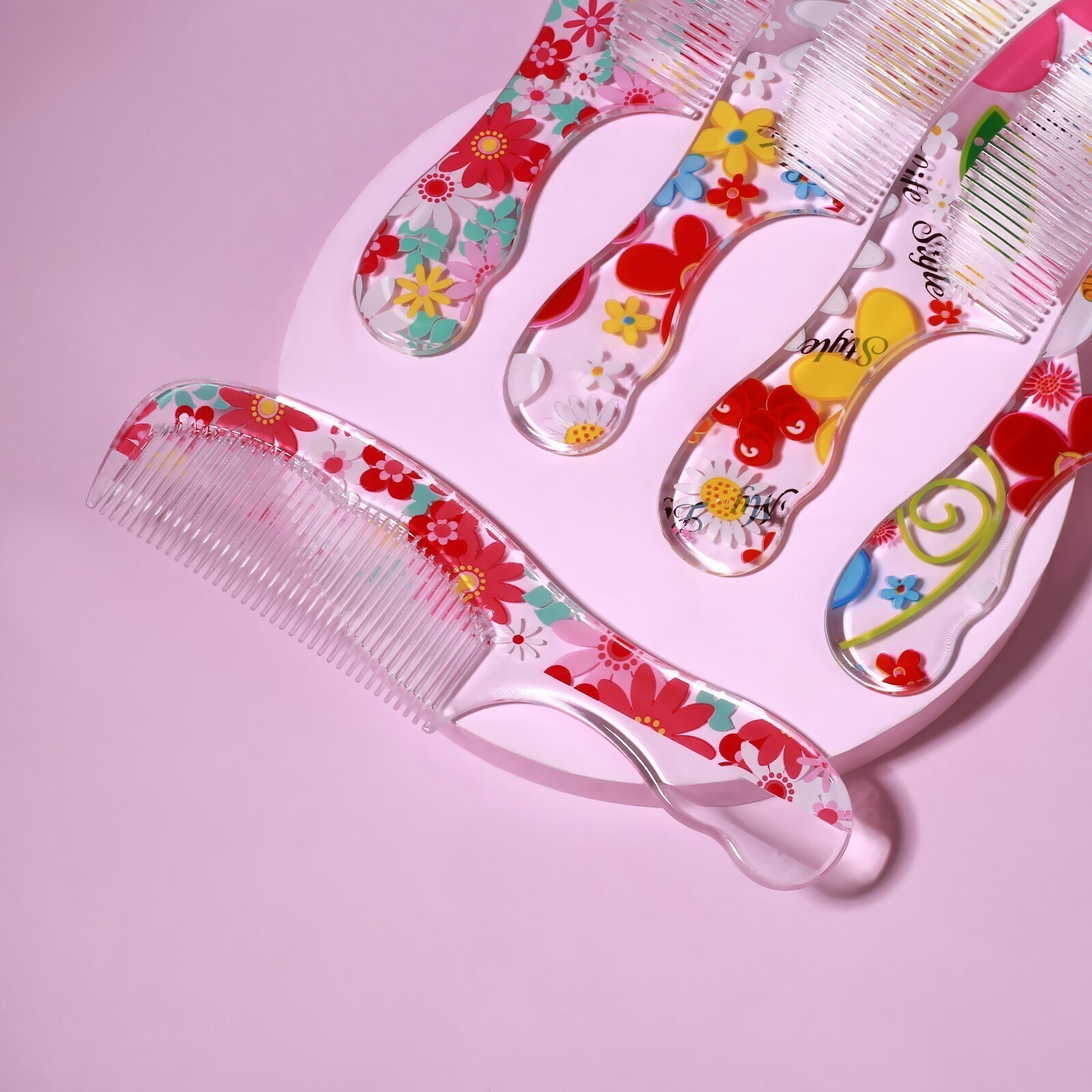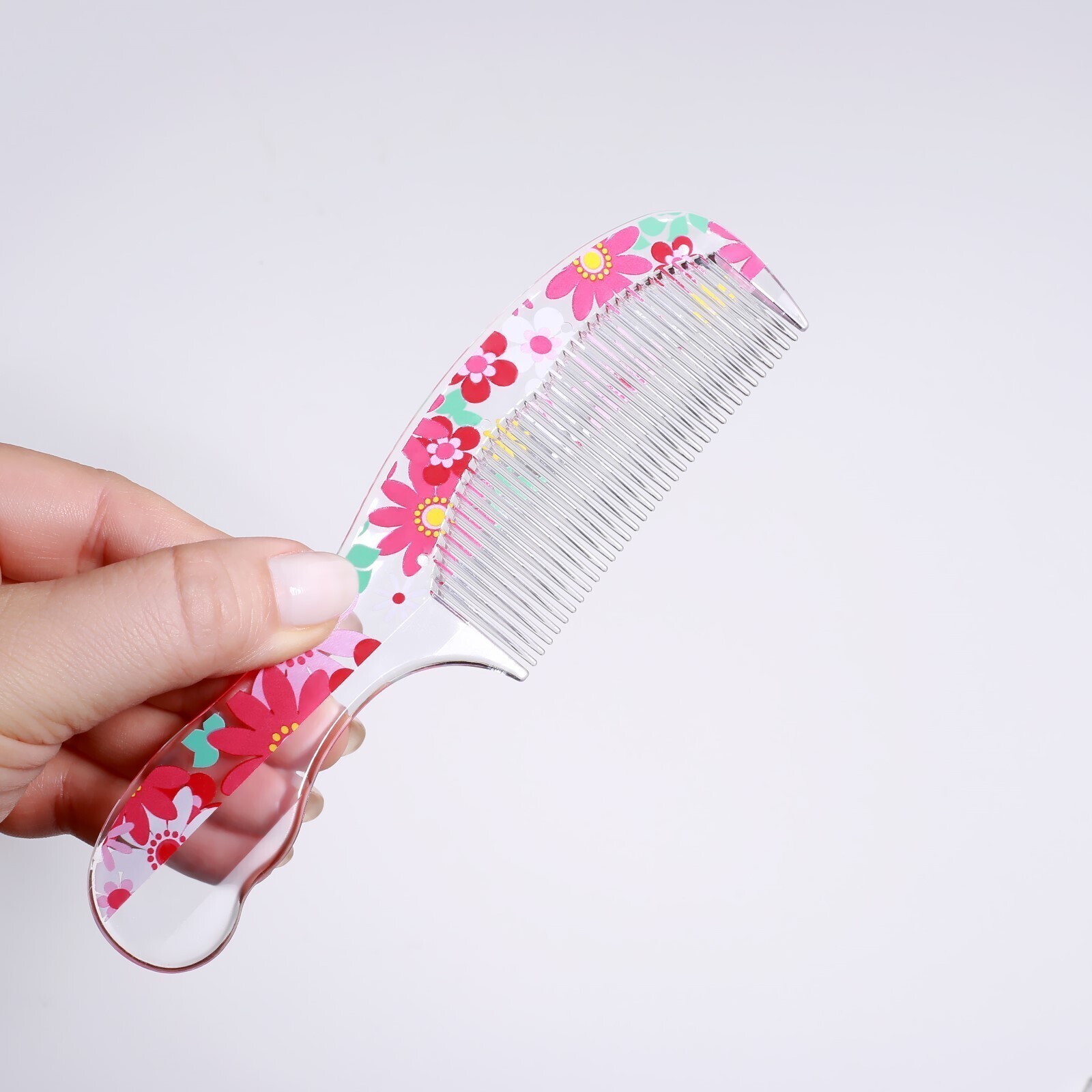 Яркая расчёска не только хорошо позаботится о ваших волосах, но и порадует стильным дизайном. Её приятно брать и удобно держать. Поэтому пользоваться гребешком с ручкой — одно удовольствие. Частые зубчики хорошо расчешут волосы средней густоты, тонкие и повреждённые. Помогут сделать пробор и начёс. Позаботятся о равномерном распределении по длине косметических средств. При этом они не поцарапают кожу и не вырвут волосы. Это изделие идеально подойдёт для домашнего использования.
