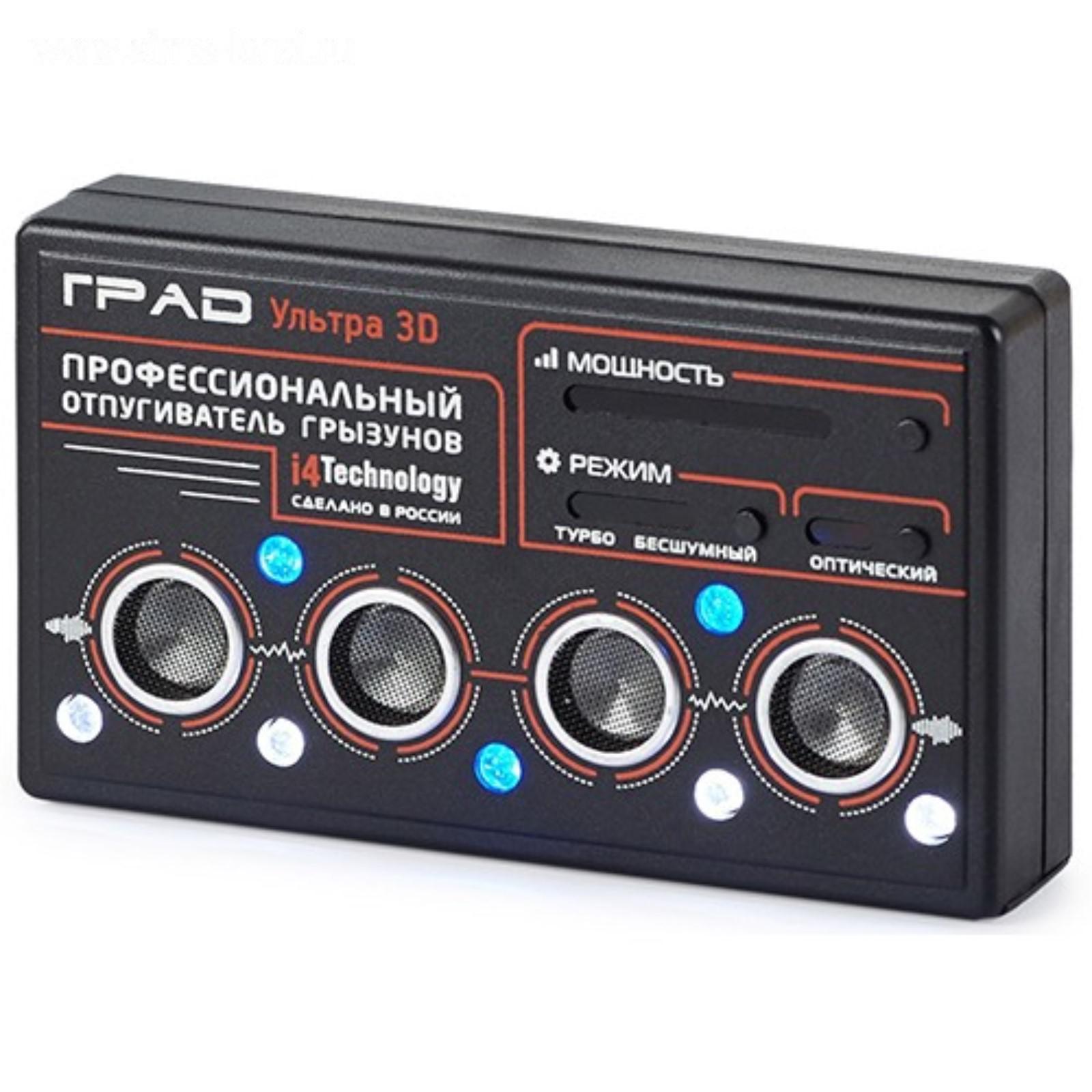 Отпугиватель грызунов i4Technology "Град" УЛЬТРА 3D , до 12000 м2, от сети, чёрный