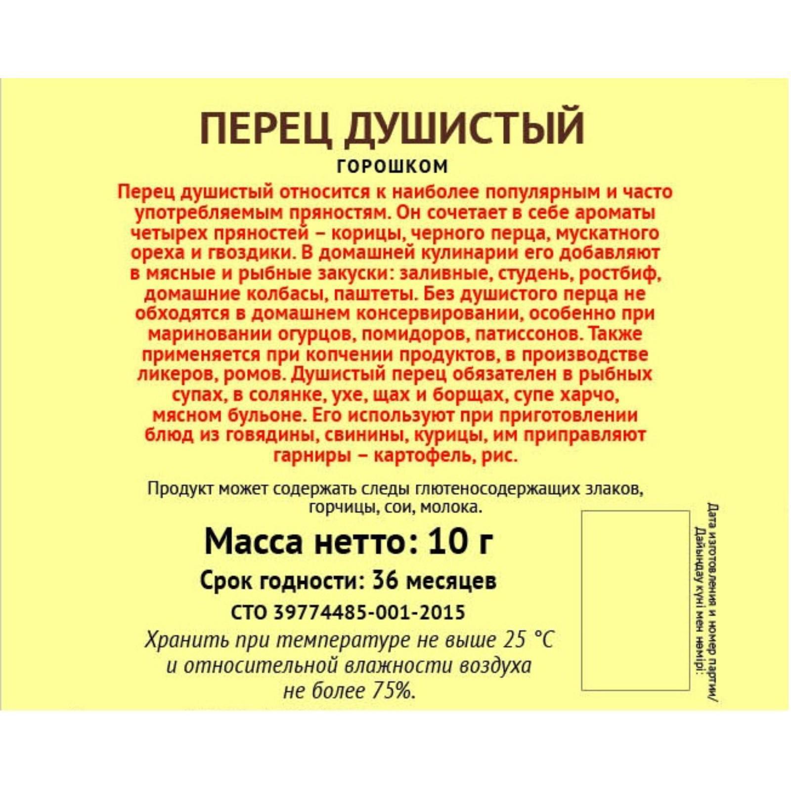 Состав: перец душистый горошком.