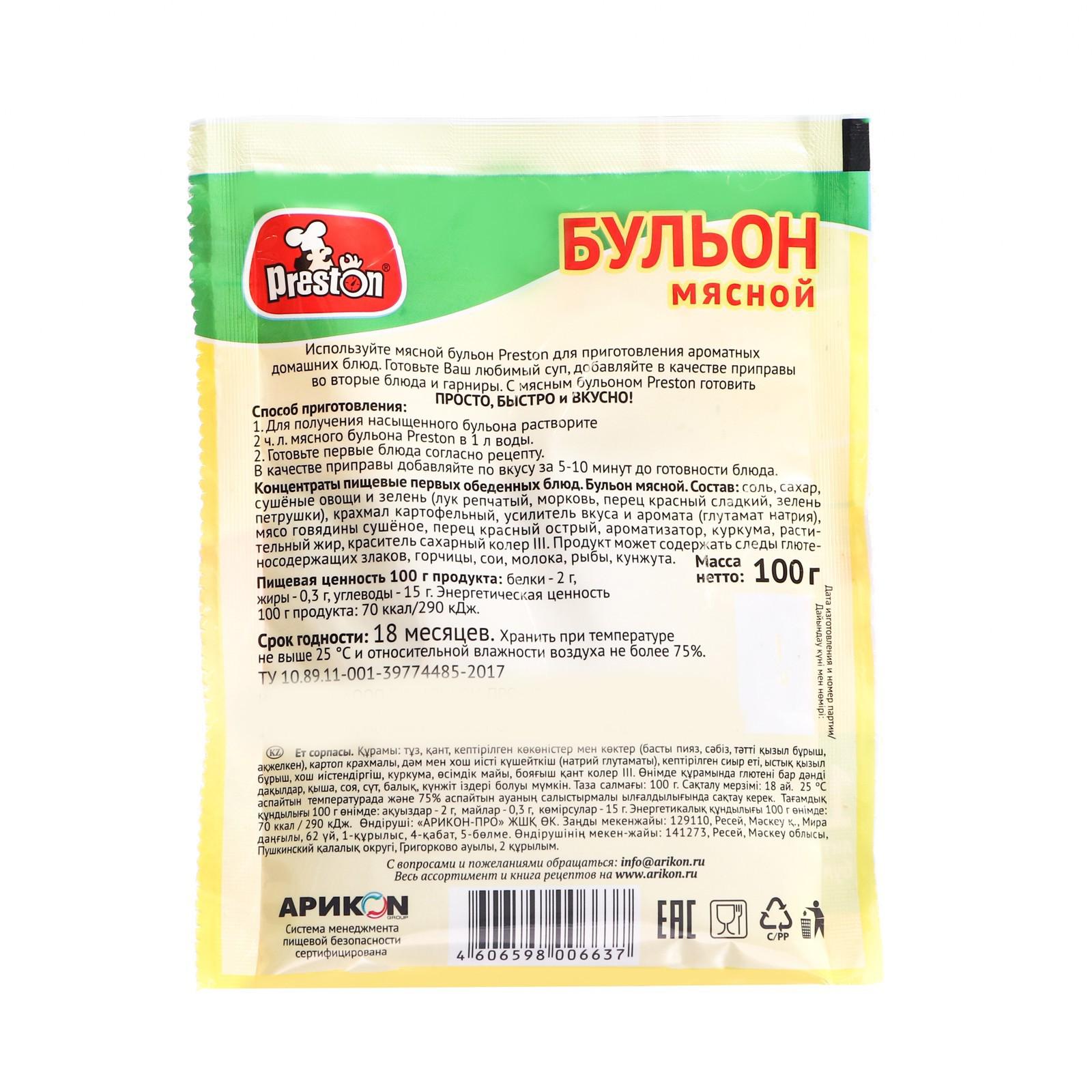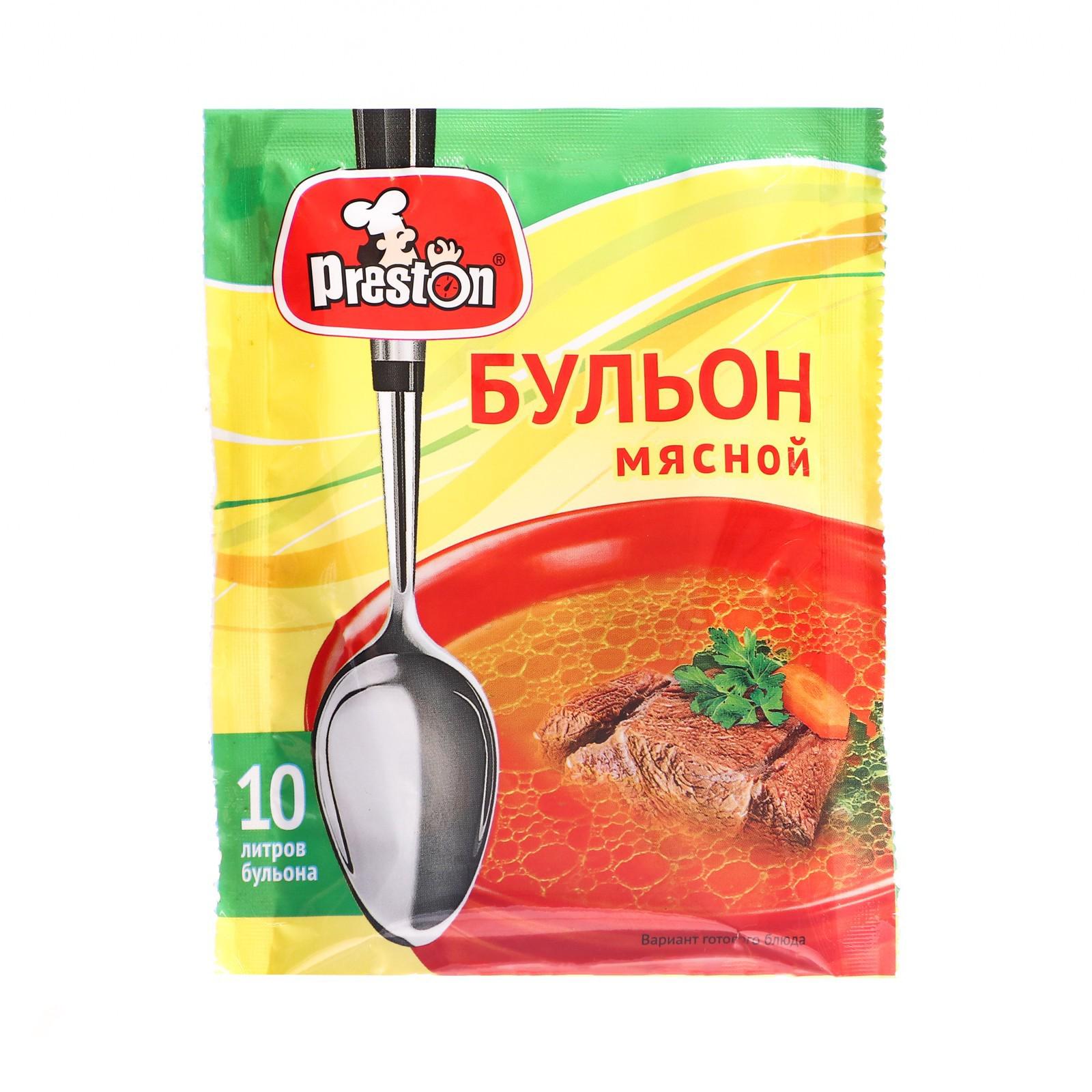 Визитная карточка каждой хозяйки; вкусный и наваристый домашний суп. А главный ингредиент - это хороший бульон. Такой, как куриный или мясной бульон от Preston. В его рецепте сочетается вкус курицы или мяса; овощей и букет ароматных специй; что придаст вашему блюду необыкновенно яркий и насыщенный вкус. Бульоны быстрого приготовления Preston значительно экономят ваше время и прекрасно гармонируют с продуктами. Имея под рукой такую бульонную смесь, вы всегда без труда сможете приготовить первое блюдо просто добавив фрикадельки; рожки; картошку.