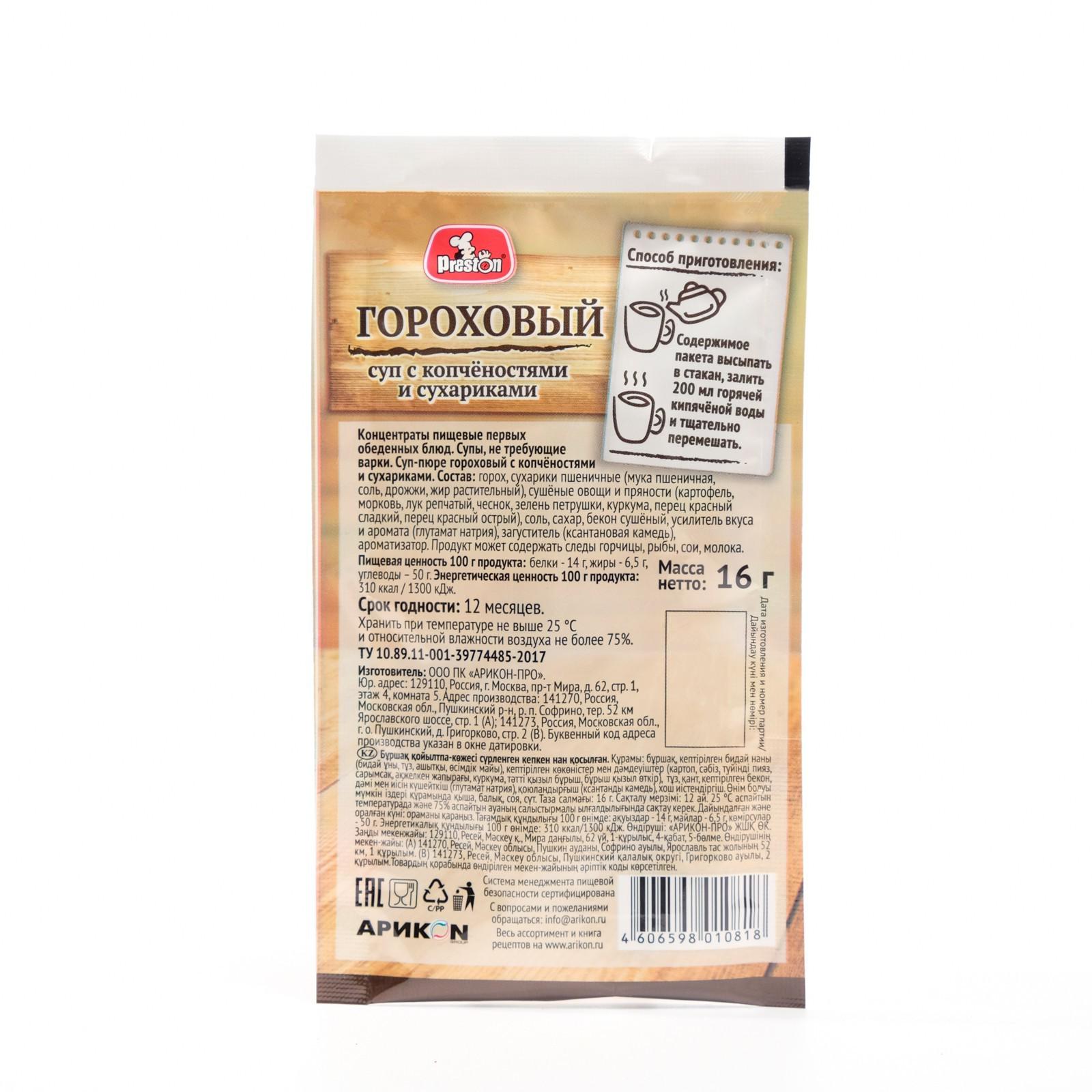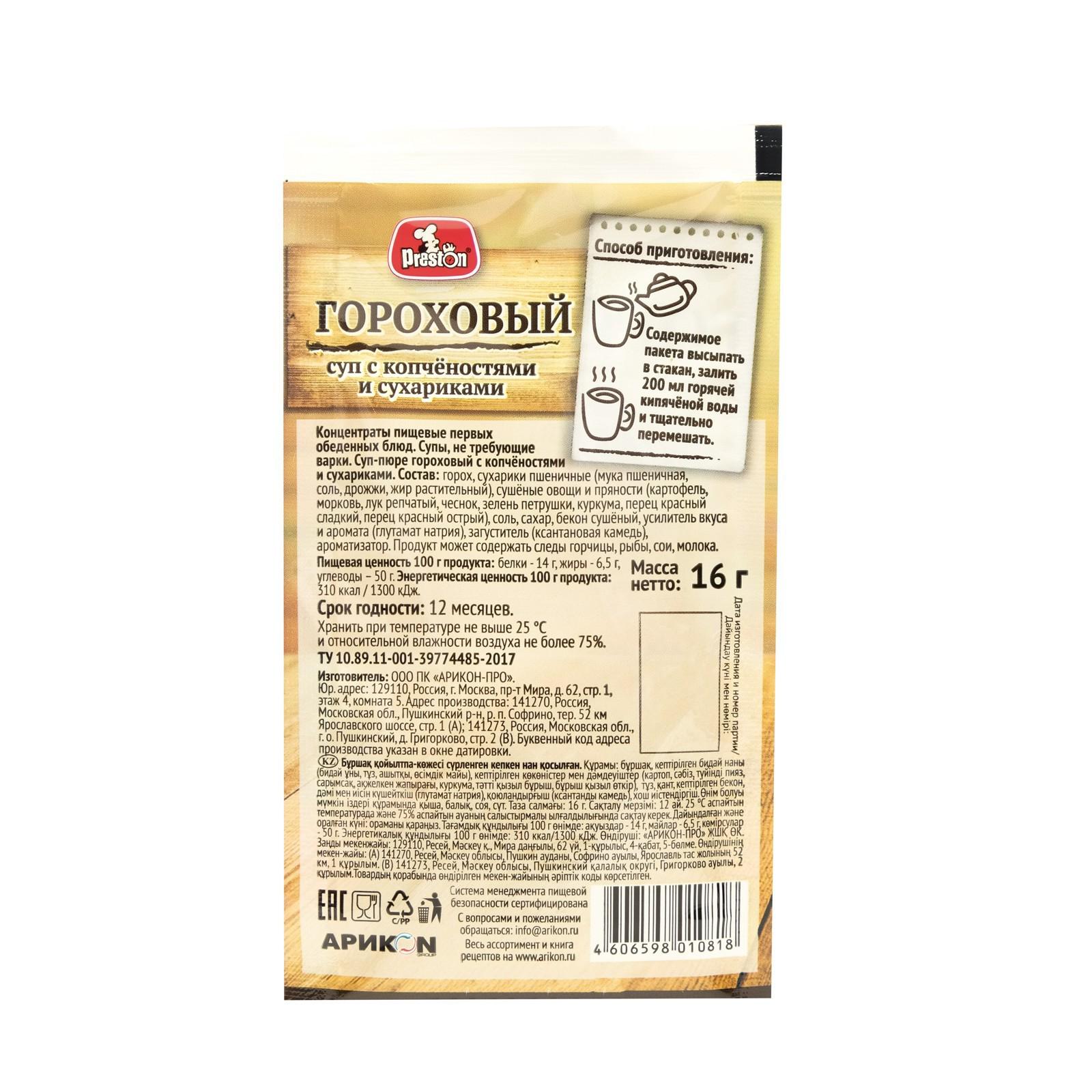 Суп-пюре гороховый с копчёностями и сухариками Preston, 16 г