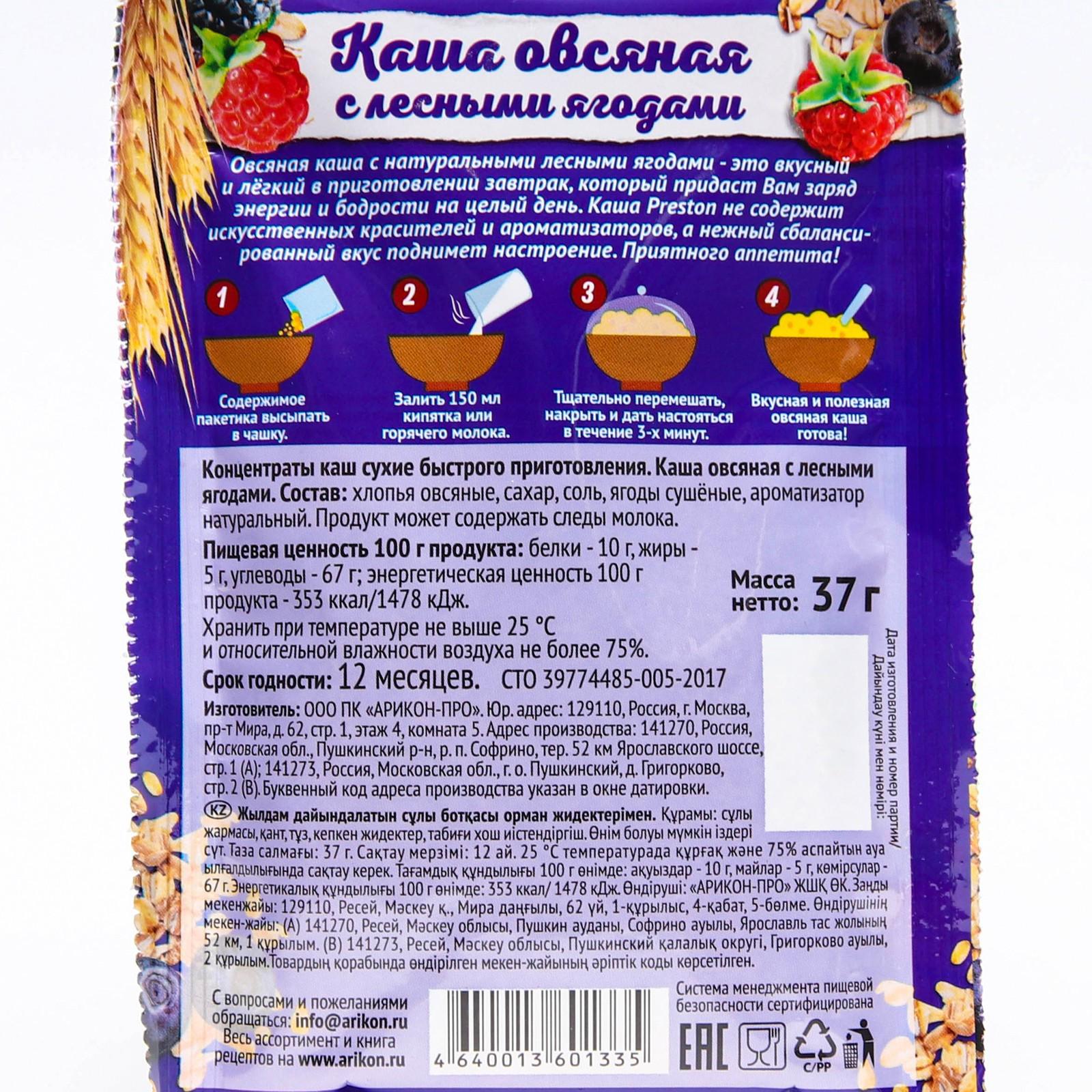 Каша овсяная с лесными ягодами Preston, быстрого приготовления, 37 г