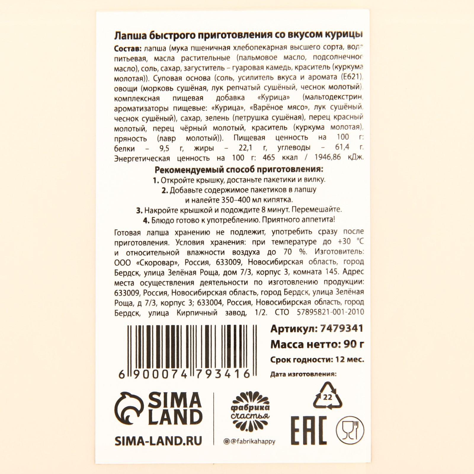 Лапша быстрого приготовления «Студенческий обед», вкус: курица, 90 г.