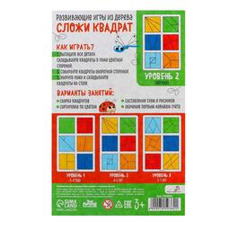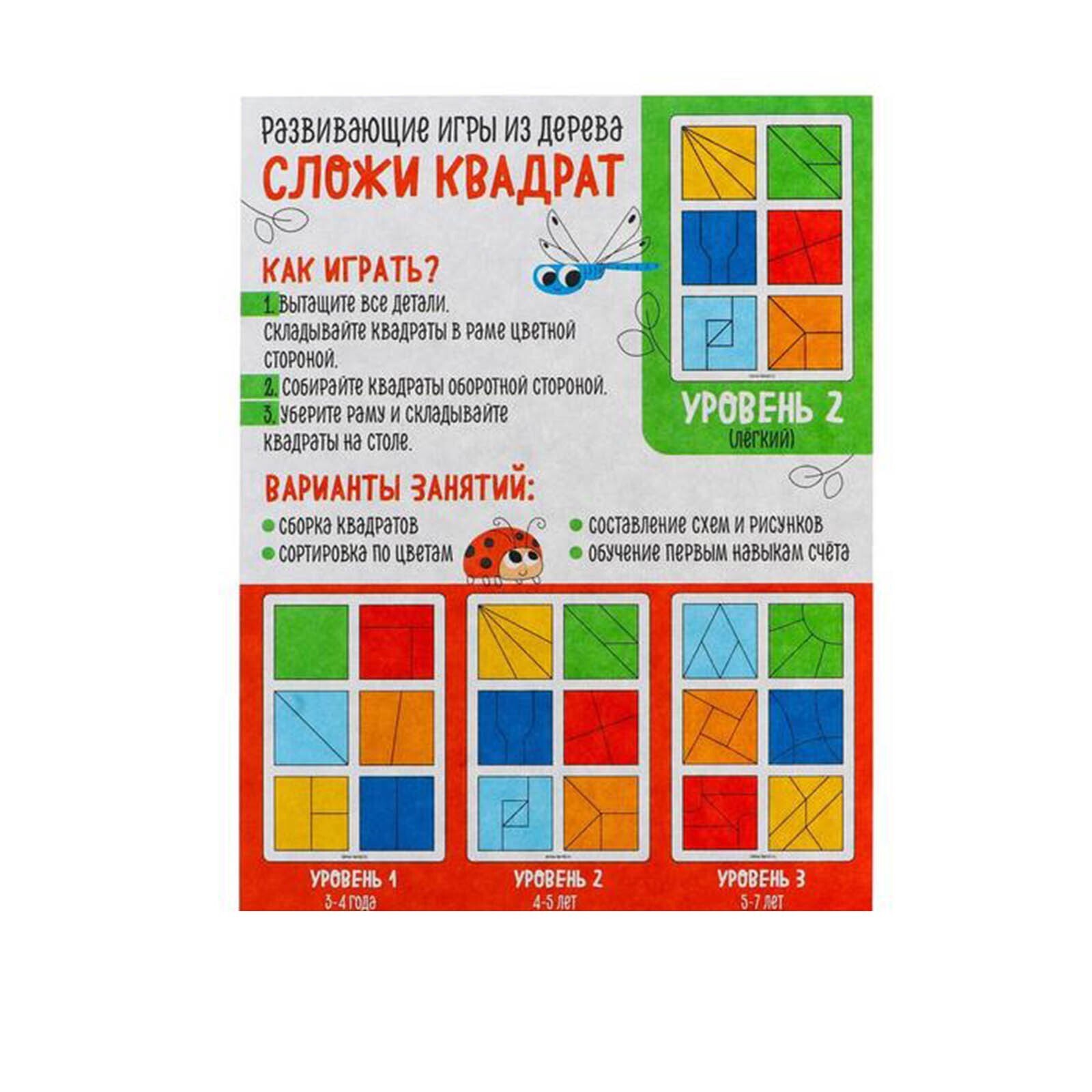 Задача малыша - собрать 6 квадратов из цветных элементов: треугольников, прямоугольников и других фигур.