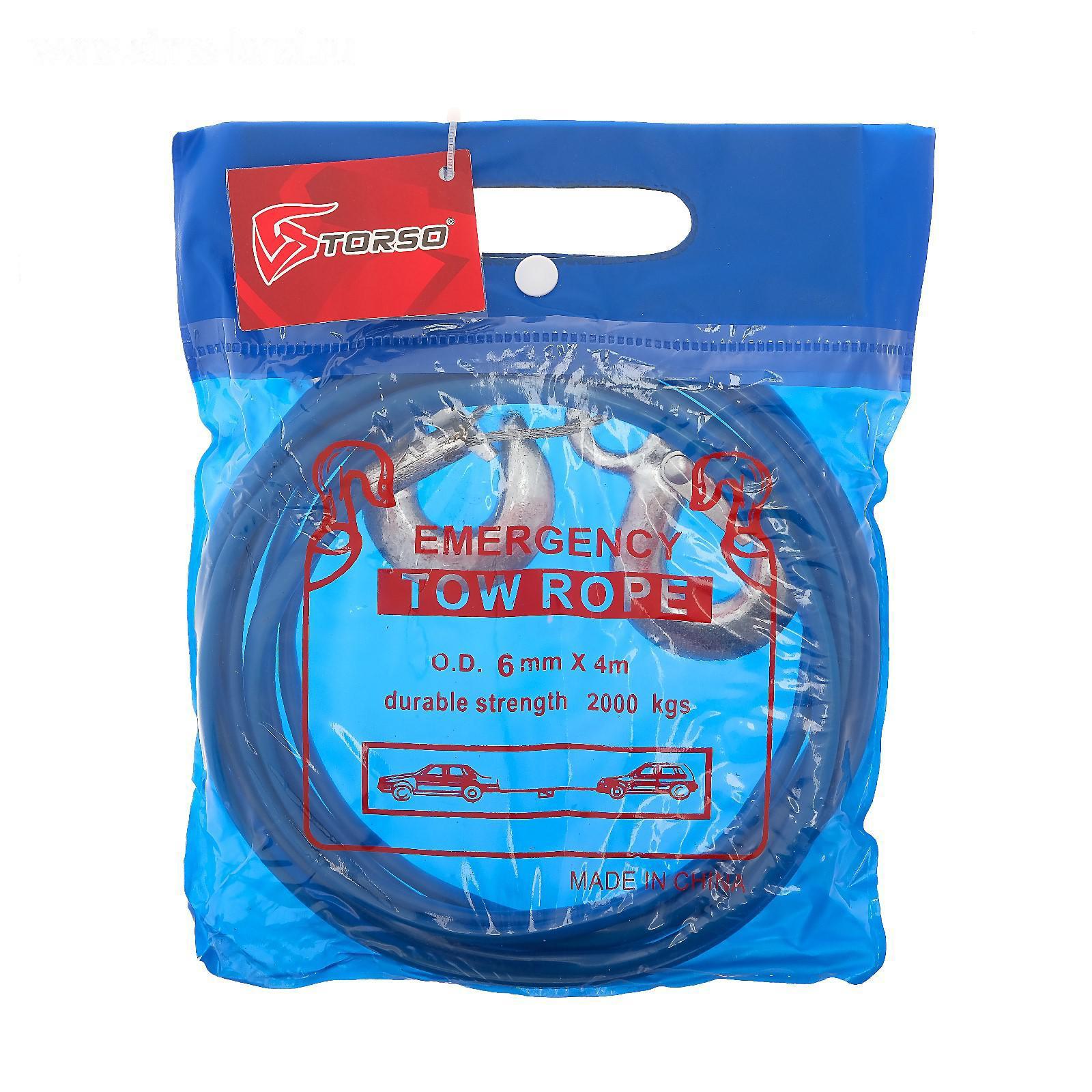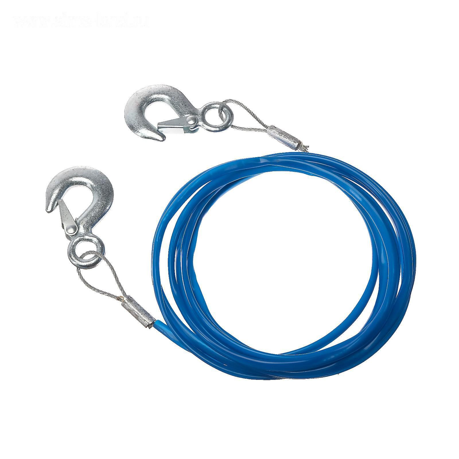 Трос буксировочный TORSO металлический в ПВХ оплётке, 4м, 2 тонны, 2 крюка