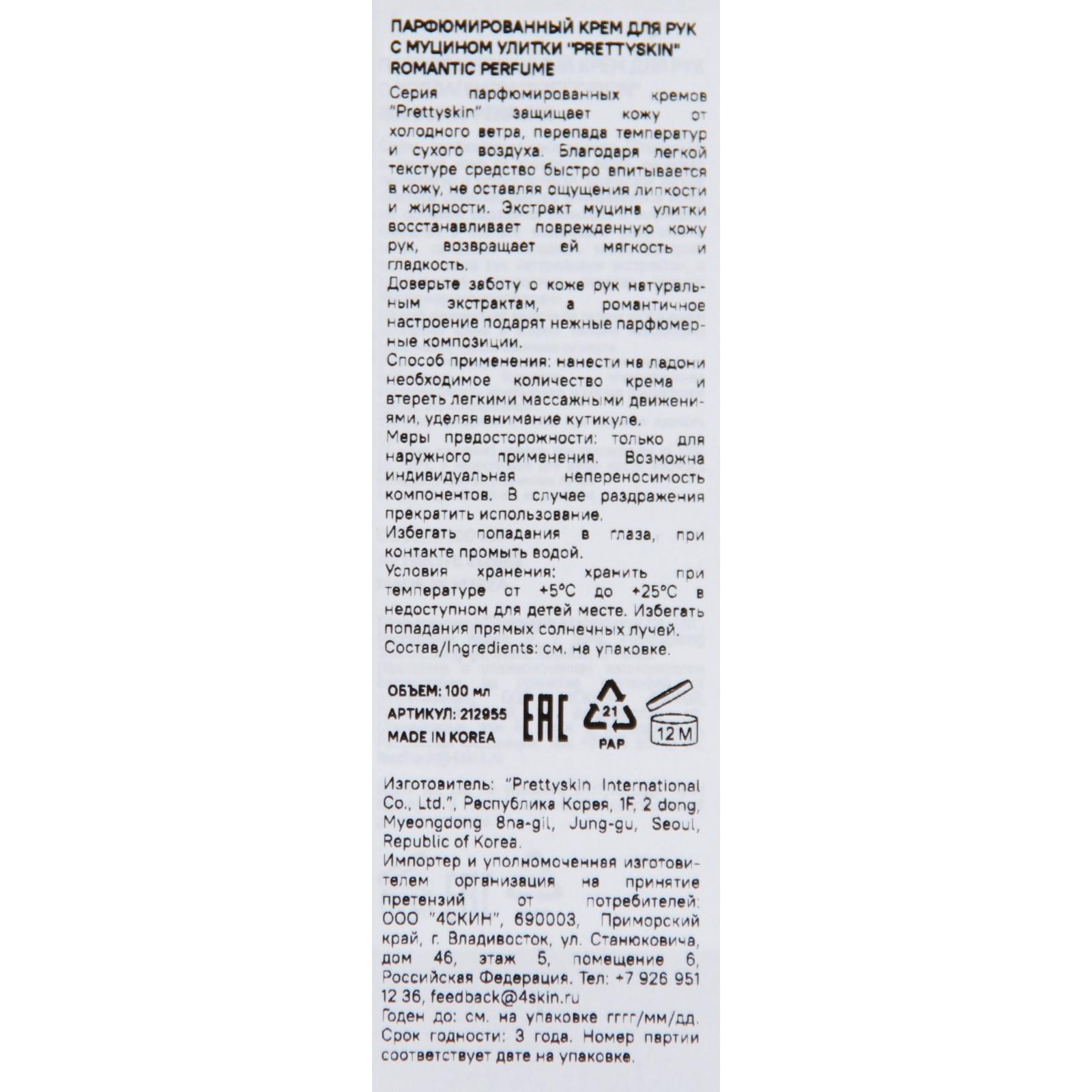 Парфюмированный крем для рук с муцином улитки "PRETTYSKIN" ROMANTIC PERFUME, 100 мл