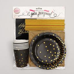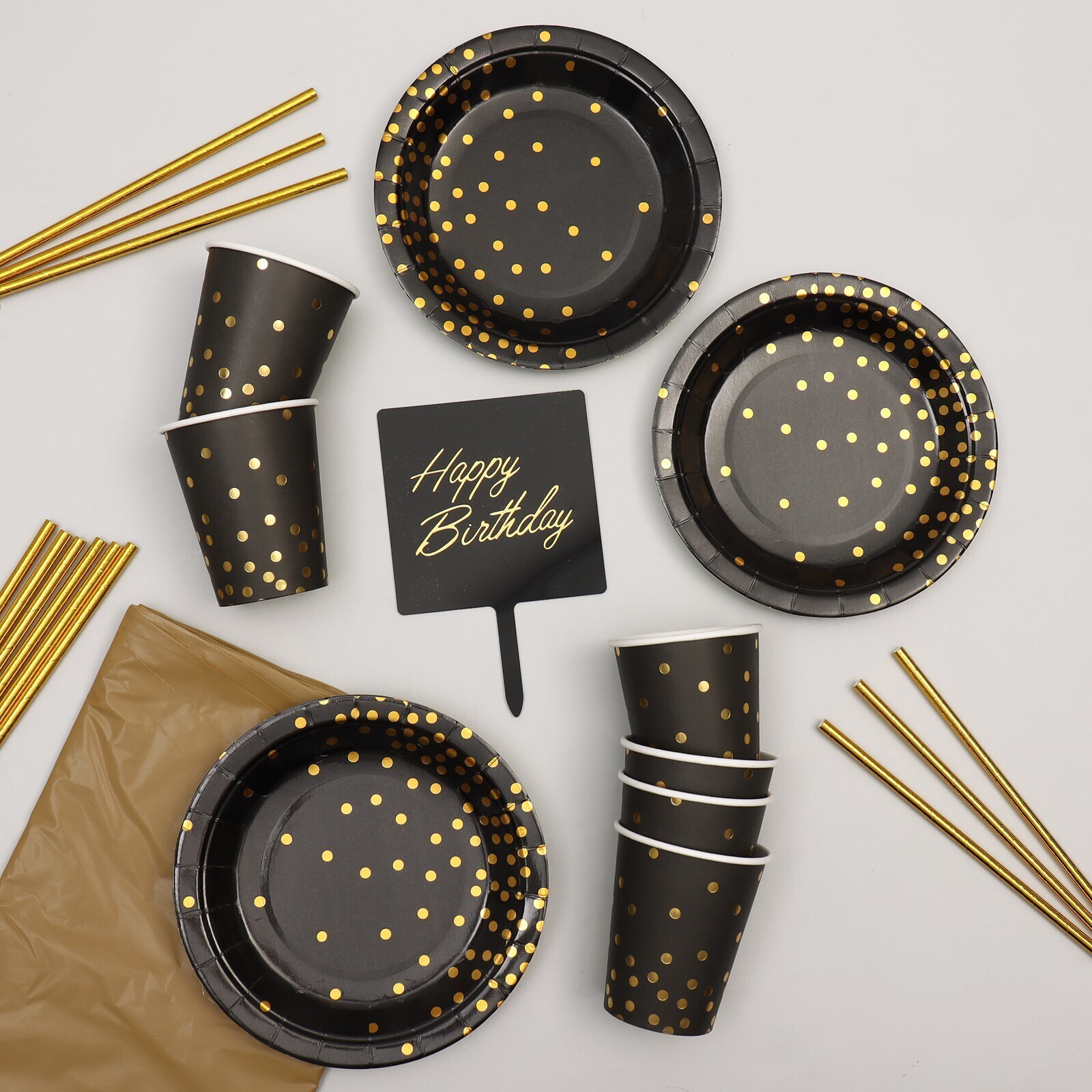Набор посуды «С днём рождения», конфетти, цвет чёрно-золотой