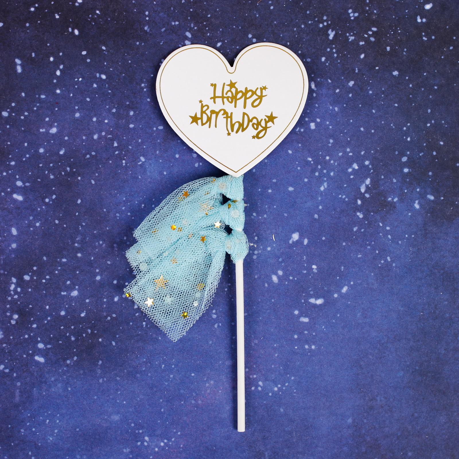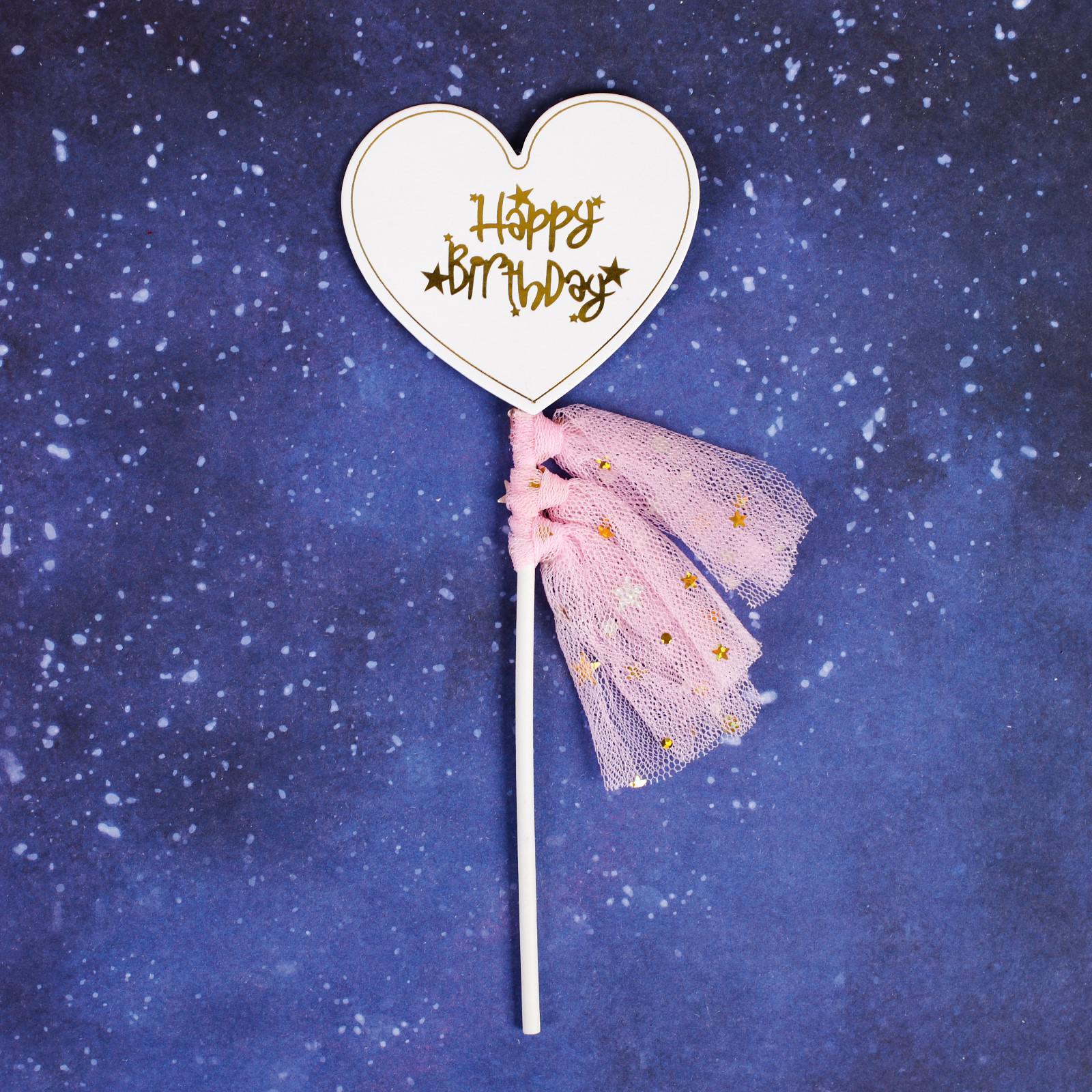 Топпер «С днём рождения», сердце с лентами, цвета МИКС