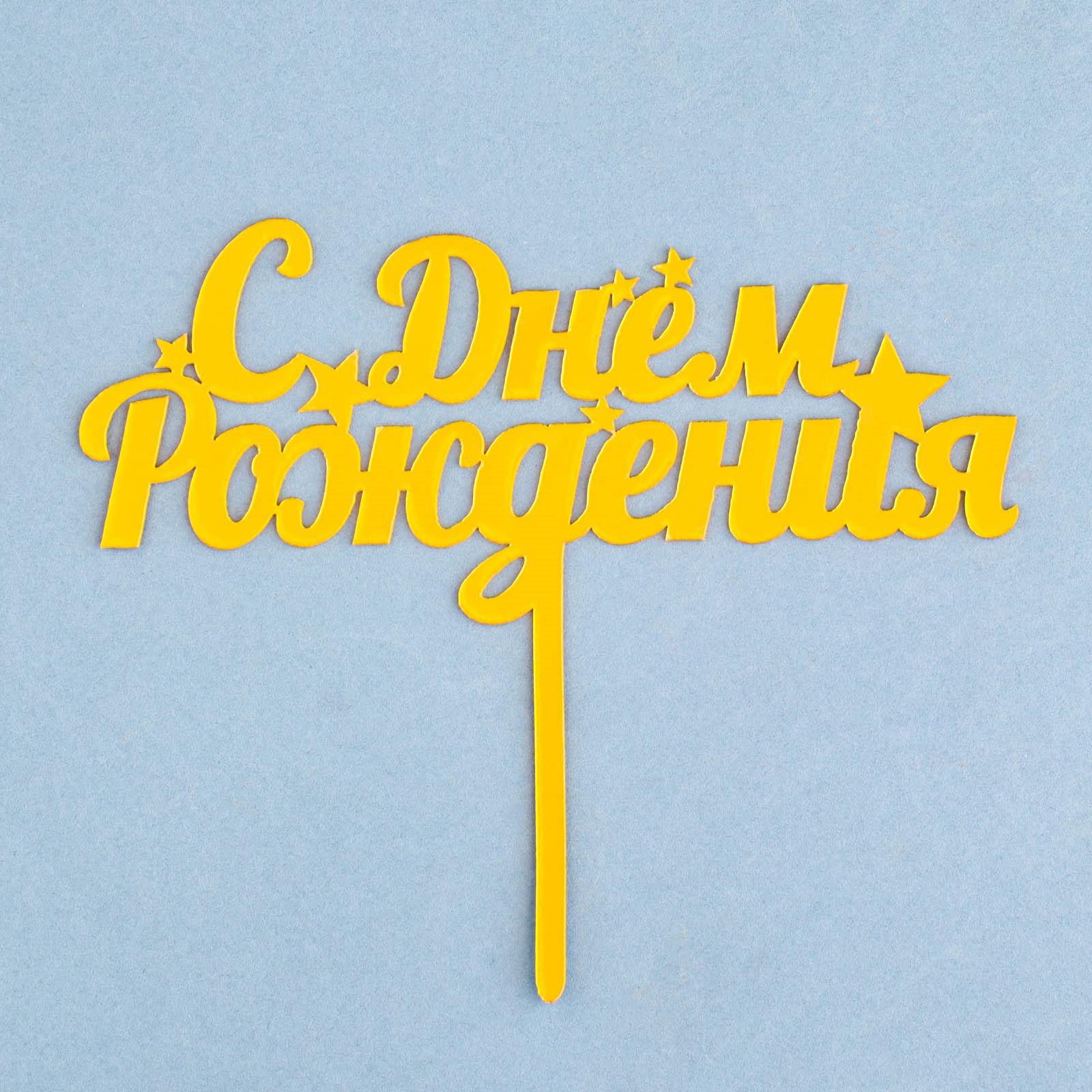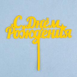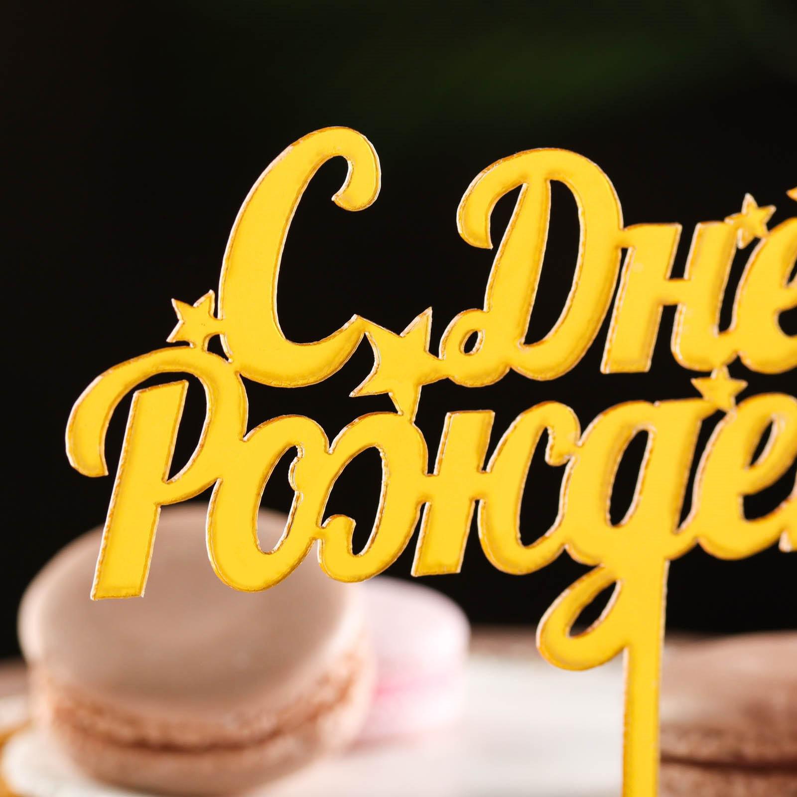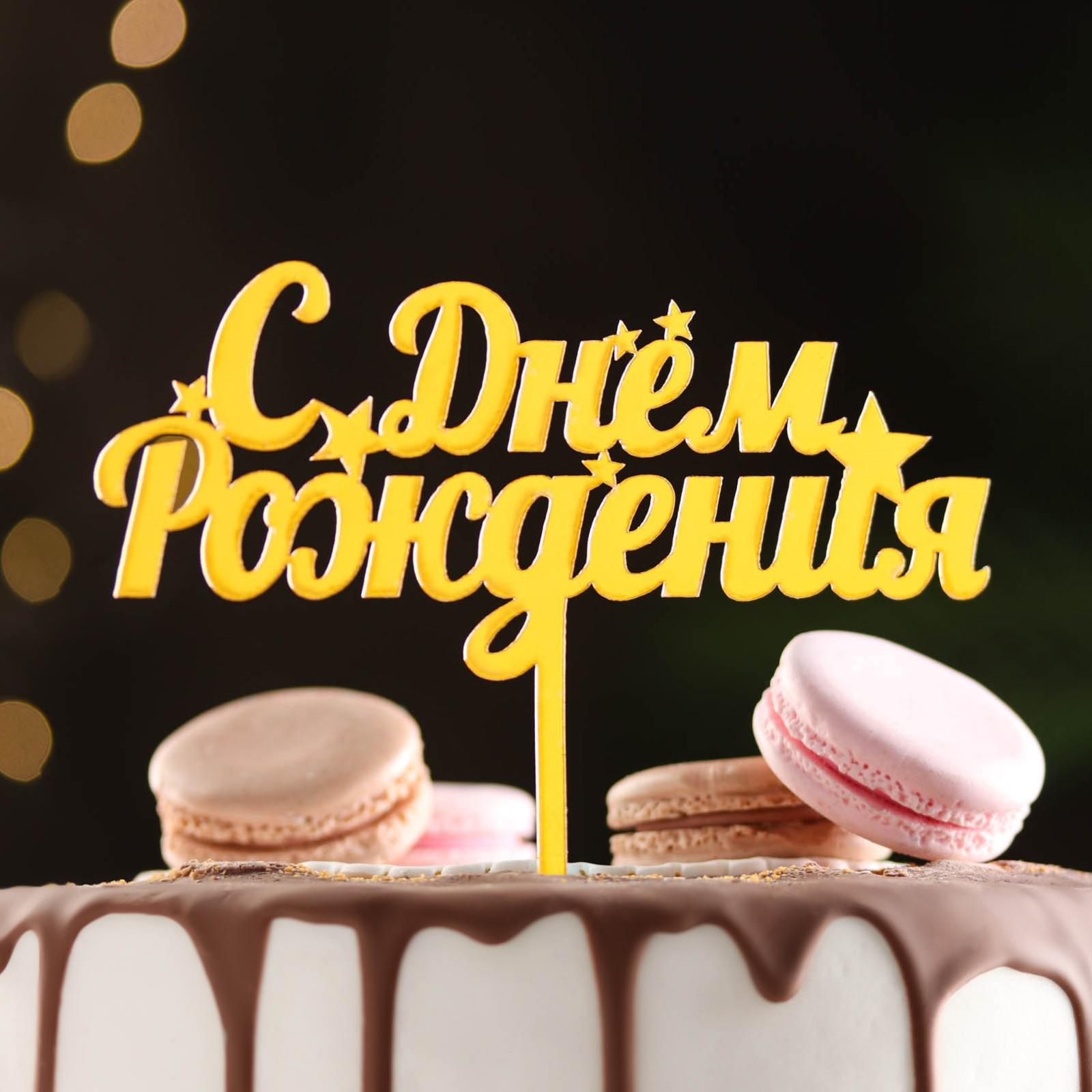 Топпер "С днем рождения", со звездами, золотой, Дарим Красиво