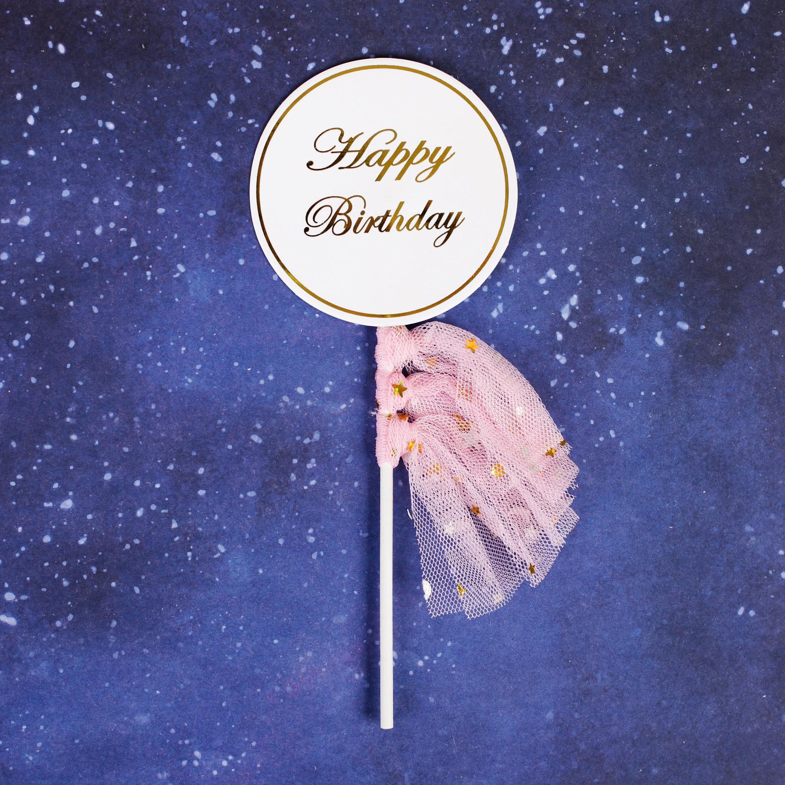 Топпер «С днём рождения», с лентами, цвета МИКС