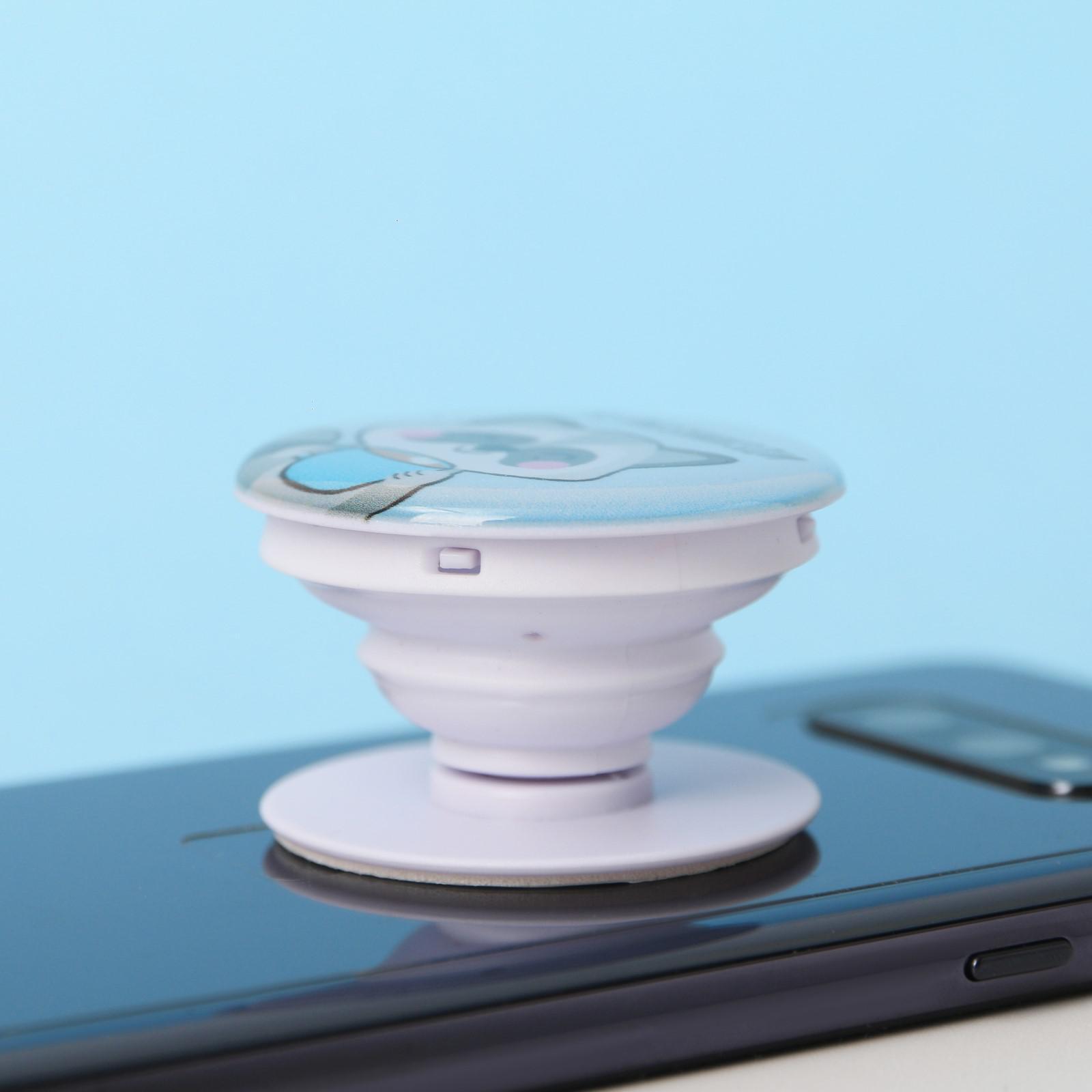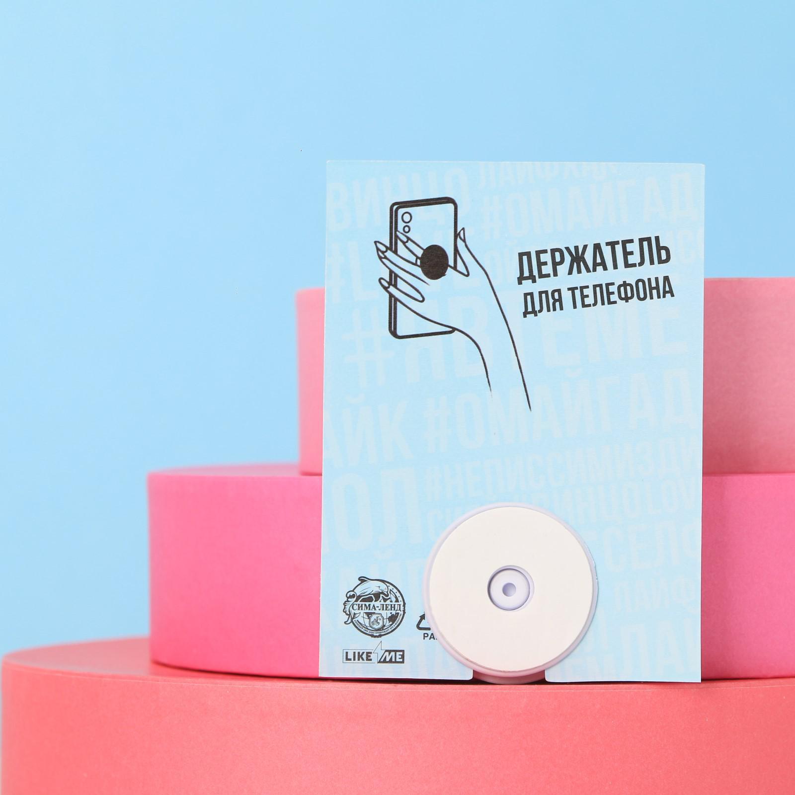 Попоскет крепится к телефону или чехлу на клейкую основу.
