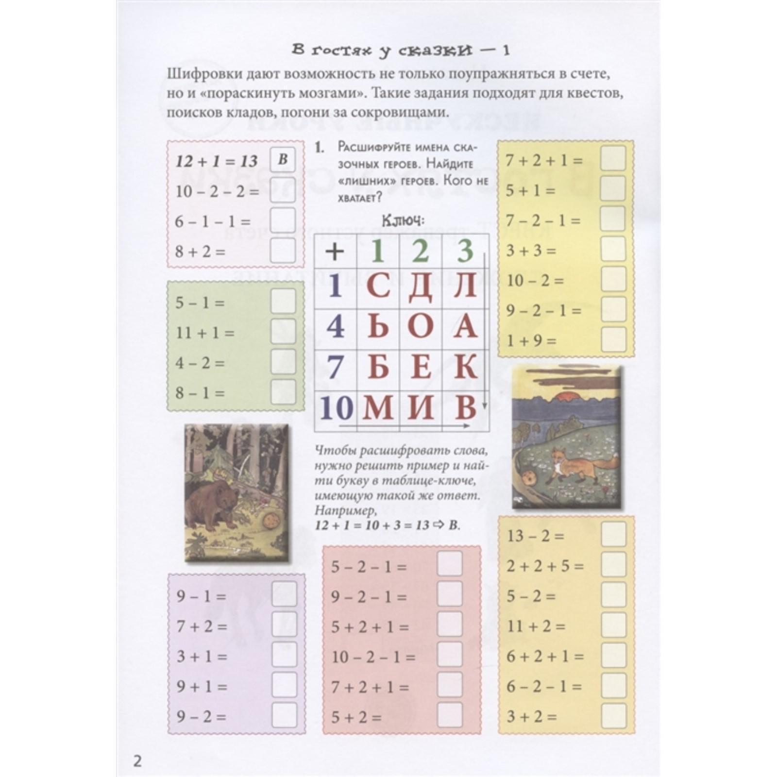 «Устный счет — гимнастика для ума». Сделать его интересным и разнообразным поможет квест-тренажер «В гостях у сказки», предназначенный для учеников 1-2 классов. Задания в нем направлены на отработку определенного типа примеров устного счета от счета в пределах 100. Сказочная тематика позволяет использовать задания для всевозможных квестов. В тренажере реализован метапредметный подход: ребята вспомнят героев былин и сказок, расшифруют сказочные цитаты. Тренажер подойдет как для индивидуальной, так и коллективной работы на уроках и занятиях кружков. Рекомендуется к использованию вместе с книгой «Квест-тренажер УСТНЫЙ СЧЕТ. Сложение и вычитание», а также тетрадями для коллективных квестов.