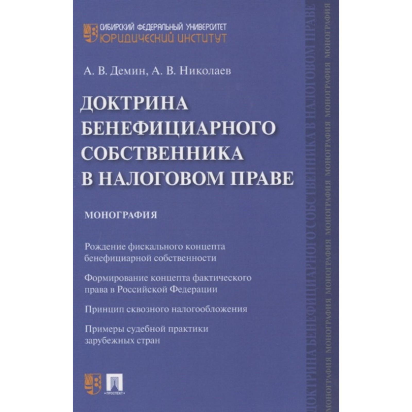 Доктрина бенефициарного собственника в налоговом праве. Монография. Демин А., Николаев А.