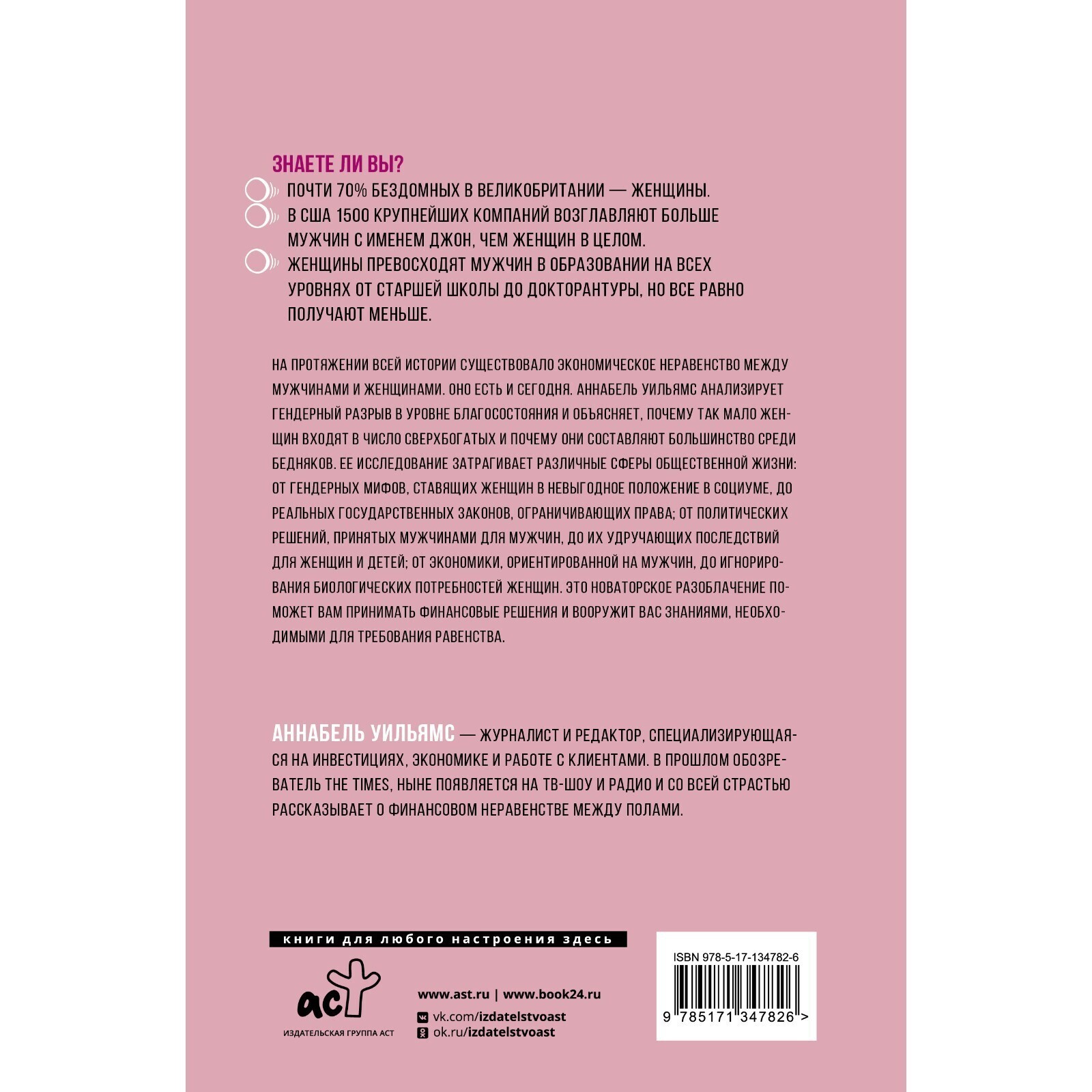 На протяжении всей истории существовало экономическое неравенство между мужчинами и женщинами. Оно есть и сегодня. Аннабель Уильямс анализирует гендерный разрыв в уровне благосостояния и объясняет, почему так мало женщин входят в число сверхбогатых и почему они составляют большинство среди бедняков. Её исследование затрагивает различные сферы общественной жизни: от гендерных мифов, ставящих женщин в невыгодное положение в социуме, до реальных государственных законов, ограничивающих права; от политических решений, принятых мужчинами для мужчин, до их удручающих последствий для женщин и детей; от экономики, ориентированной на мужчин, до игнорирования биологических потребностей женщин. Это новаторское разоблачение поможет вам принимать финансовые решения и вооружит вас знаниями, необходимыми для требования равенства.