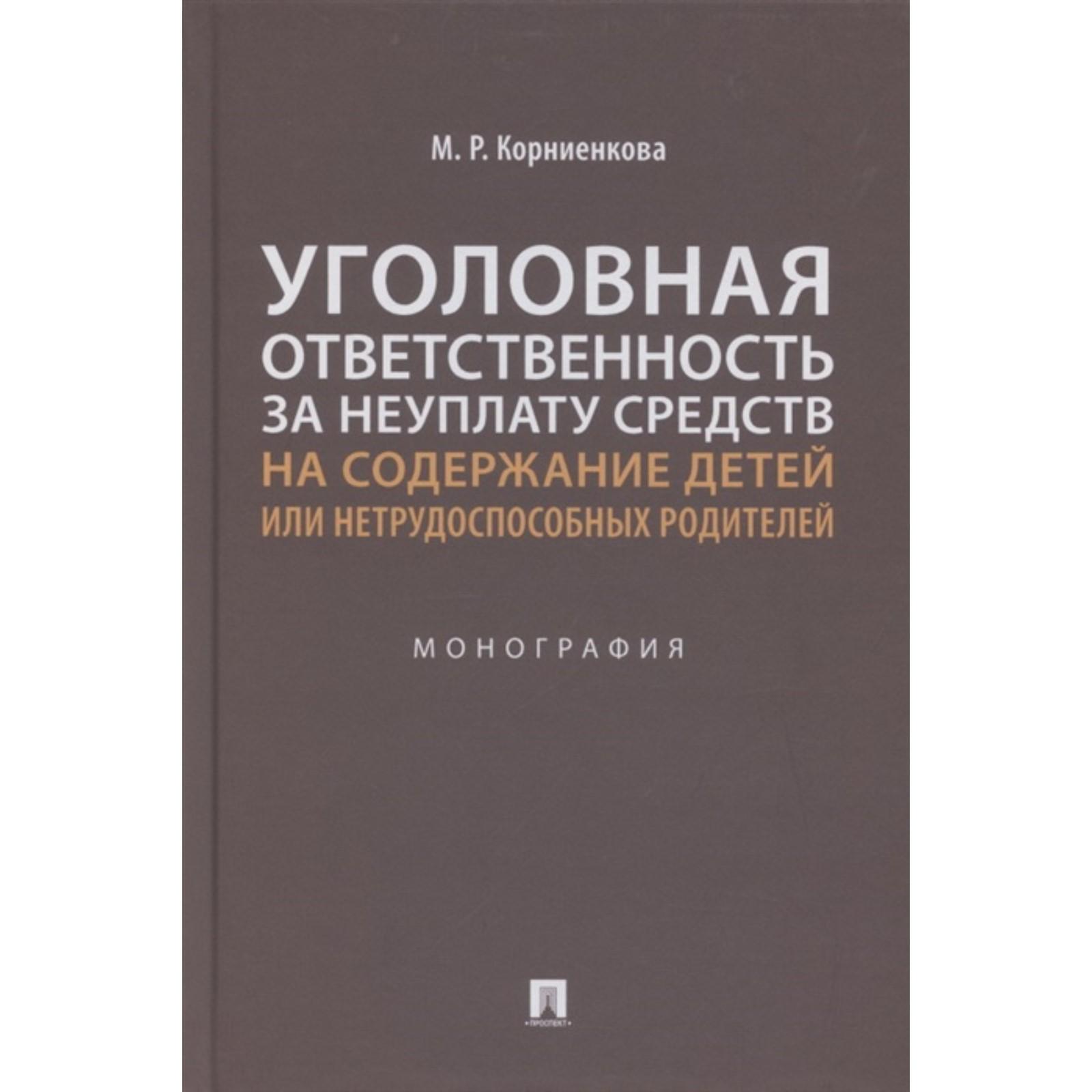 Уголовная ответственность за неуплату средств на содержание детей или нетрудоспособных родителей. Монография. Корниенкова М.Р.