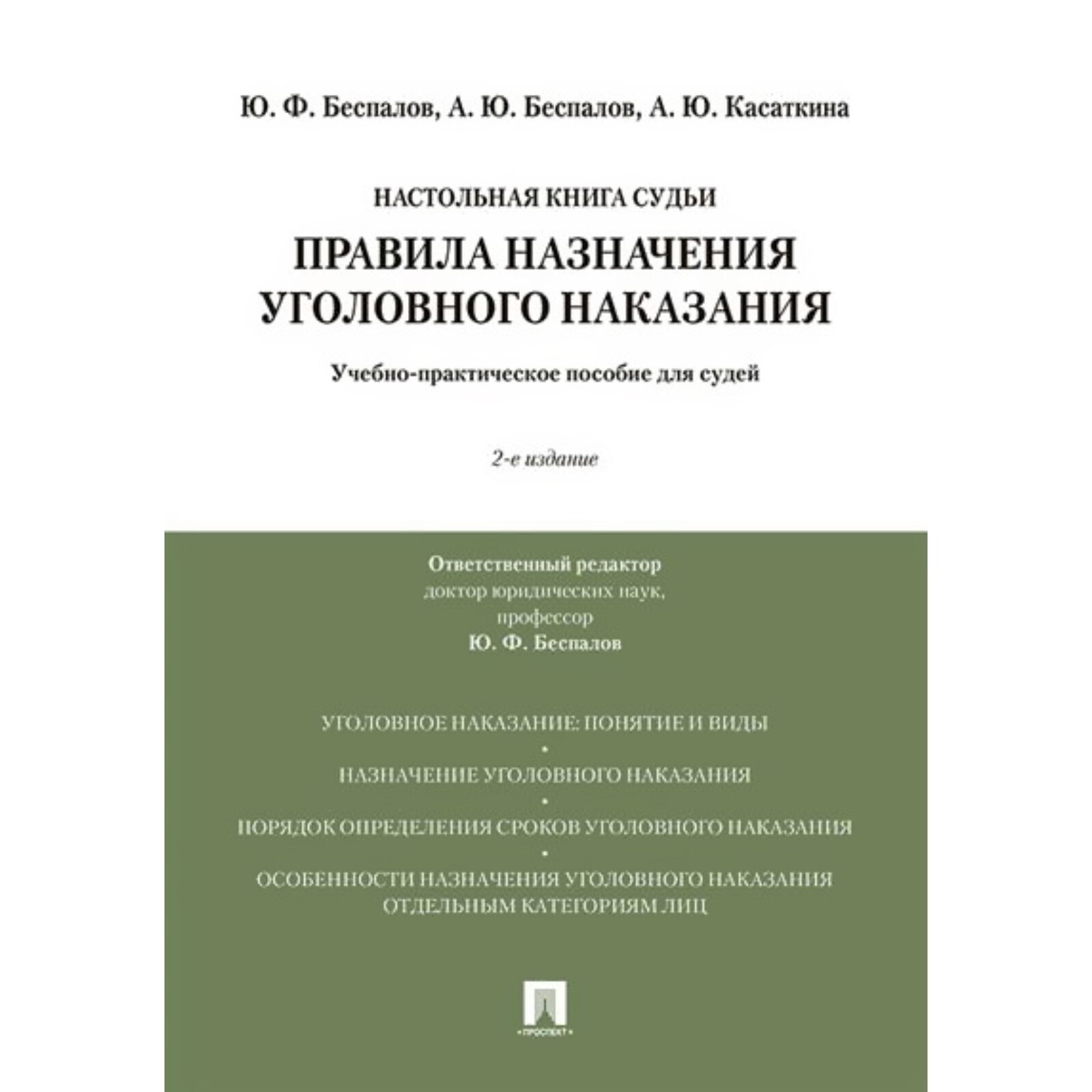 Правила назначения уголовного наказания. Учебное пособие для судей. Беспавлов Ю., Беспалов А., Касаткина А. Ю.