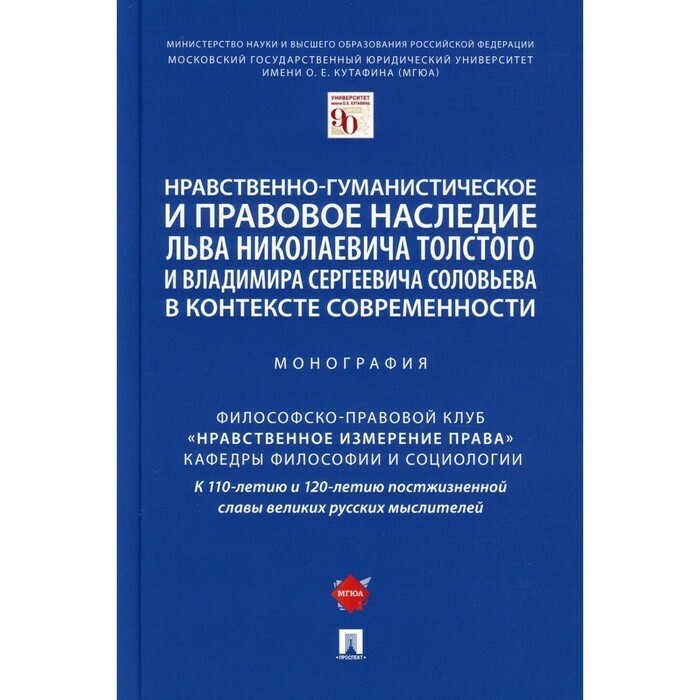 Настоящая коллективная монография в основном создана по результатам одноименной Всероссийской научной конференции, состоявшейся в Университете имени О. Е. Кутафина (МГЮА) 12 ноября 2020 г. Мероприятие было организовано философско-правовым клубом «Нравственное измерение права» под руководством доктора философских наук, профессора кафедры философии и социологии В. М. Артемова. В связи со стратегией усиления нравственного измерения и очеловечивания права в книге отражены результаты научных исследований нравственно-гуманистического и правового наследия Льва Николаевича Толстого и Владимира Сергеевича Соловьева в контексте современности. Последовательно исследуются разные грани их творчества, выделяются общее и особенное. Показывается, что рассматриваемое наследие является важным условием дальнейшего развития общества и права.