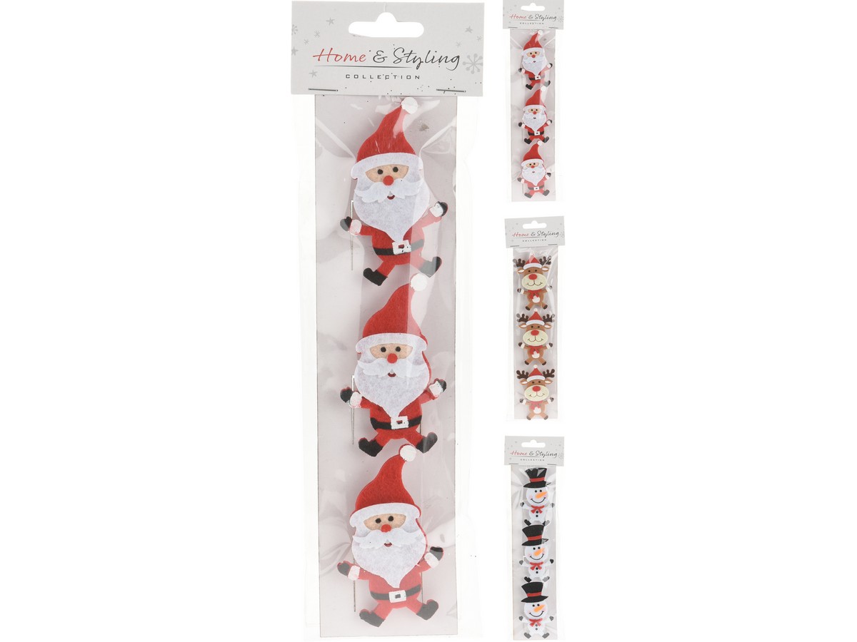 НАБОР УКРАШЕНИЙ НОВОГОДНИХ декоративных на прищепке 3 шт. (код 686542)