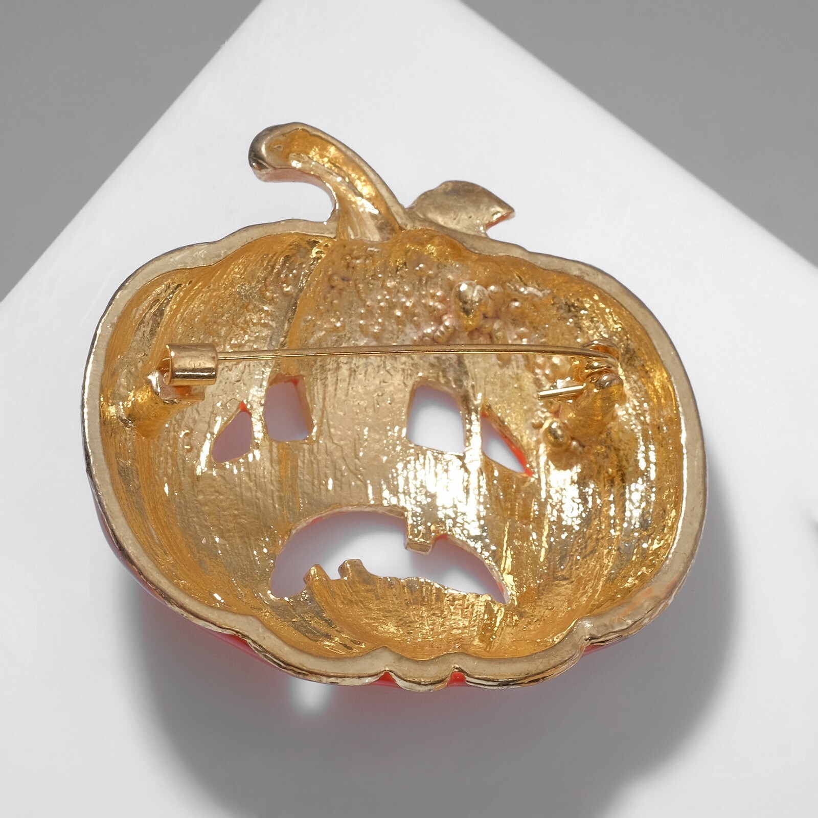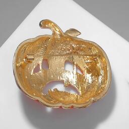 Брошь "Хэллоуин" тыква, грустная, цвет оранжевый в золоте