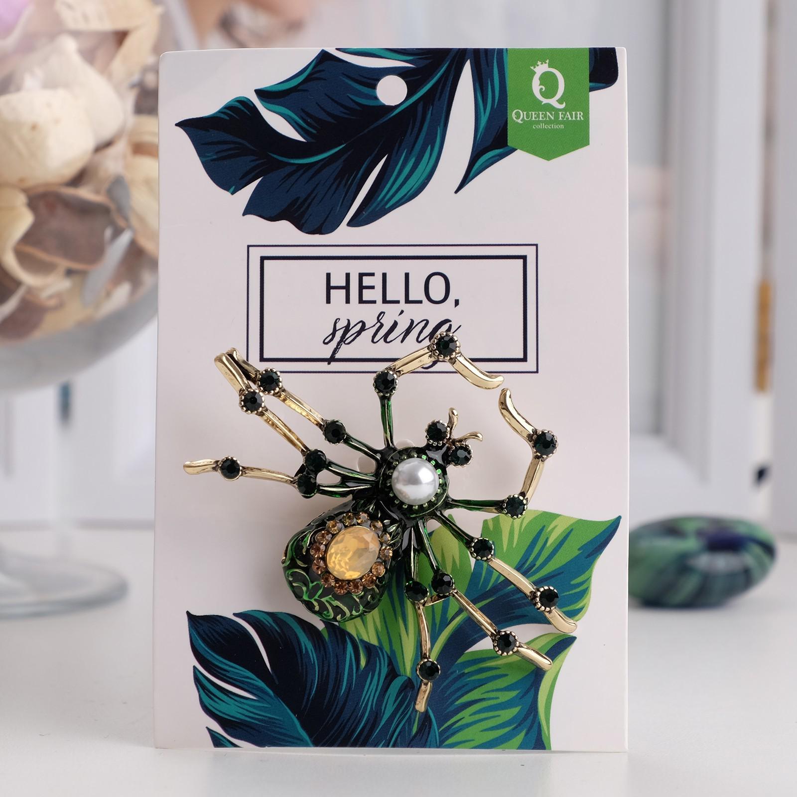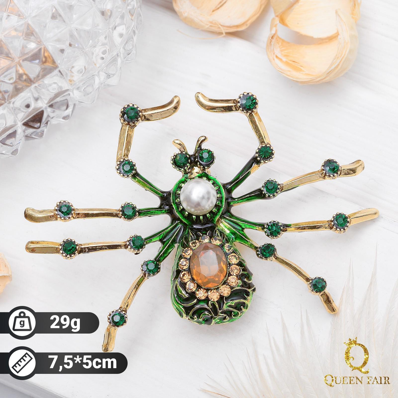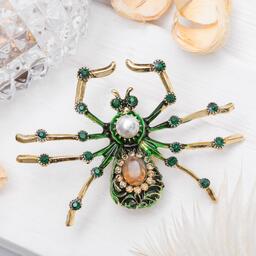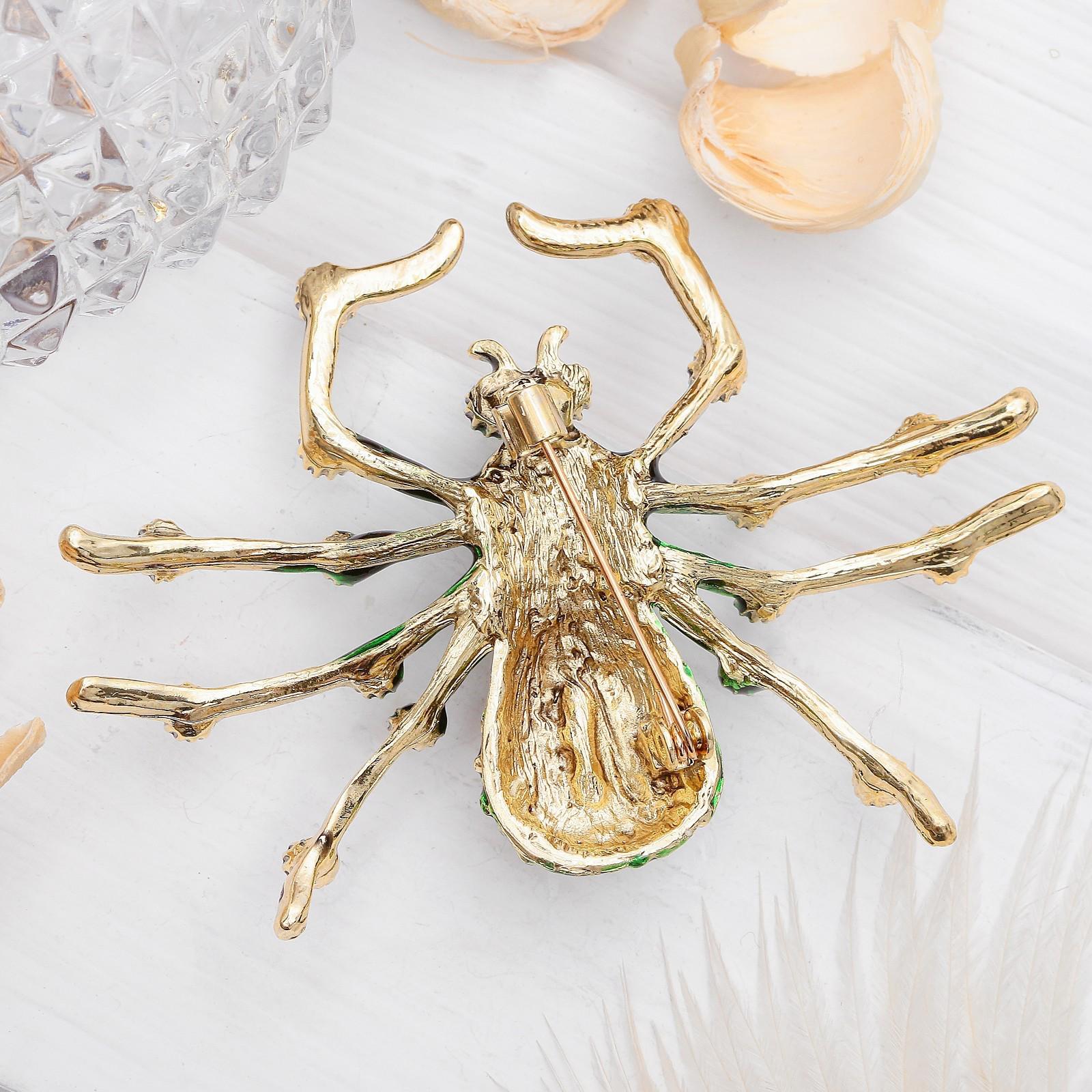Брошь "Паук", цвет коричнево-зелёный в чернёном розовом золоте