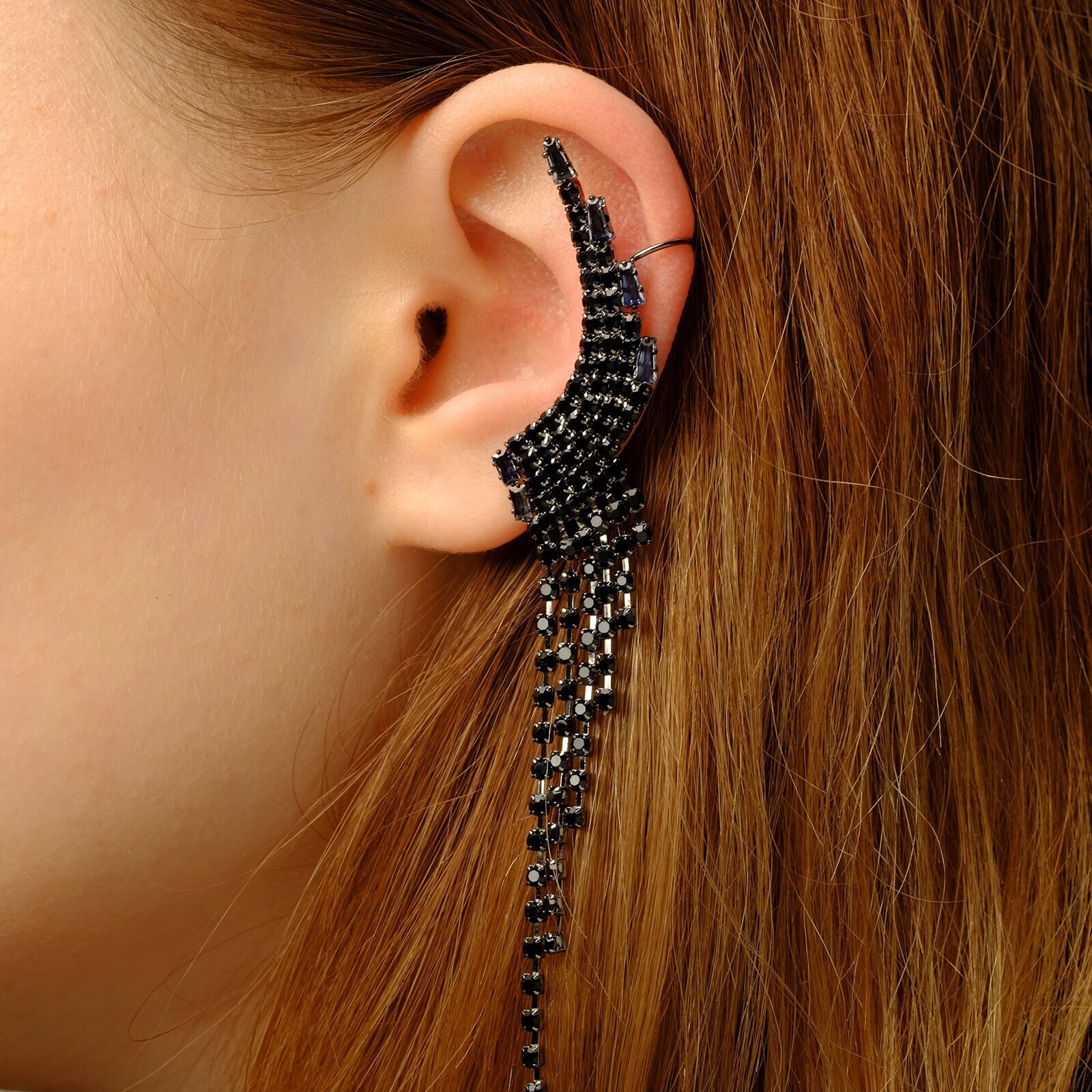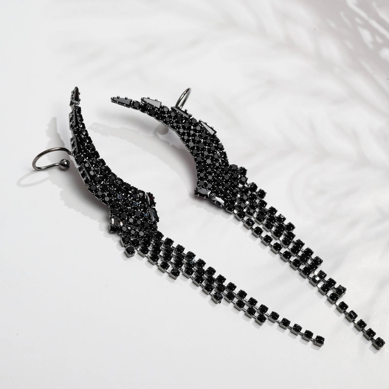 Серьги "Каффы" крылья, цвет чёрный в серебре