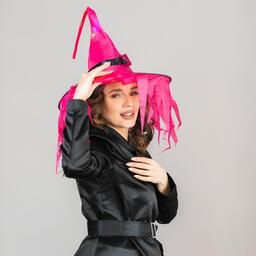 Шляпа-конус — незаменимый атрибут для такого праздника! Она создаст образ экстравагантной ведьмочки. А какой именно она будет, решать вам. Добавьте длинный плащ и станьте повелительницей всех магов и волшебников. Или наденьте коротенькое платье и превратитесь в романтичную колдунью. Цветная лента на шляпе добавит наряду яркости и выделит вас из толпы. В таком головном уборе вы будете самым ярким костюмированным персонажем!