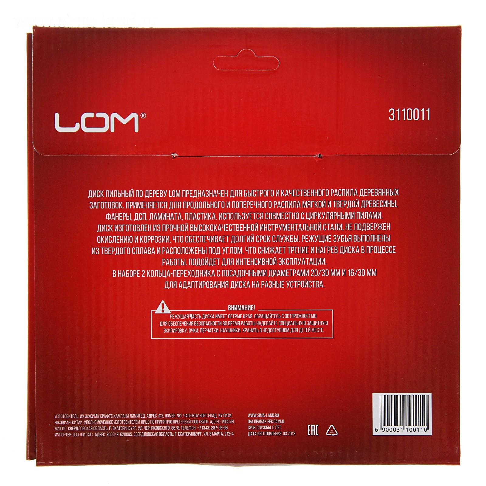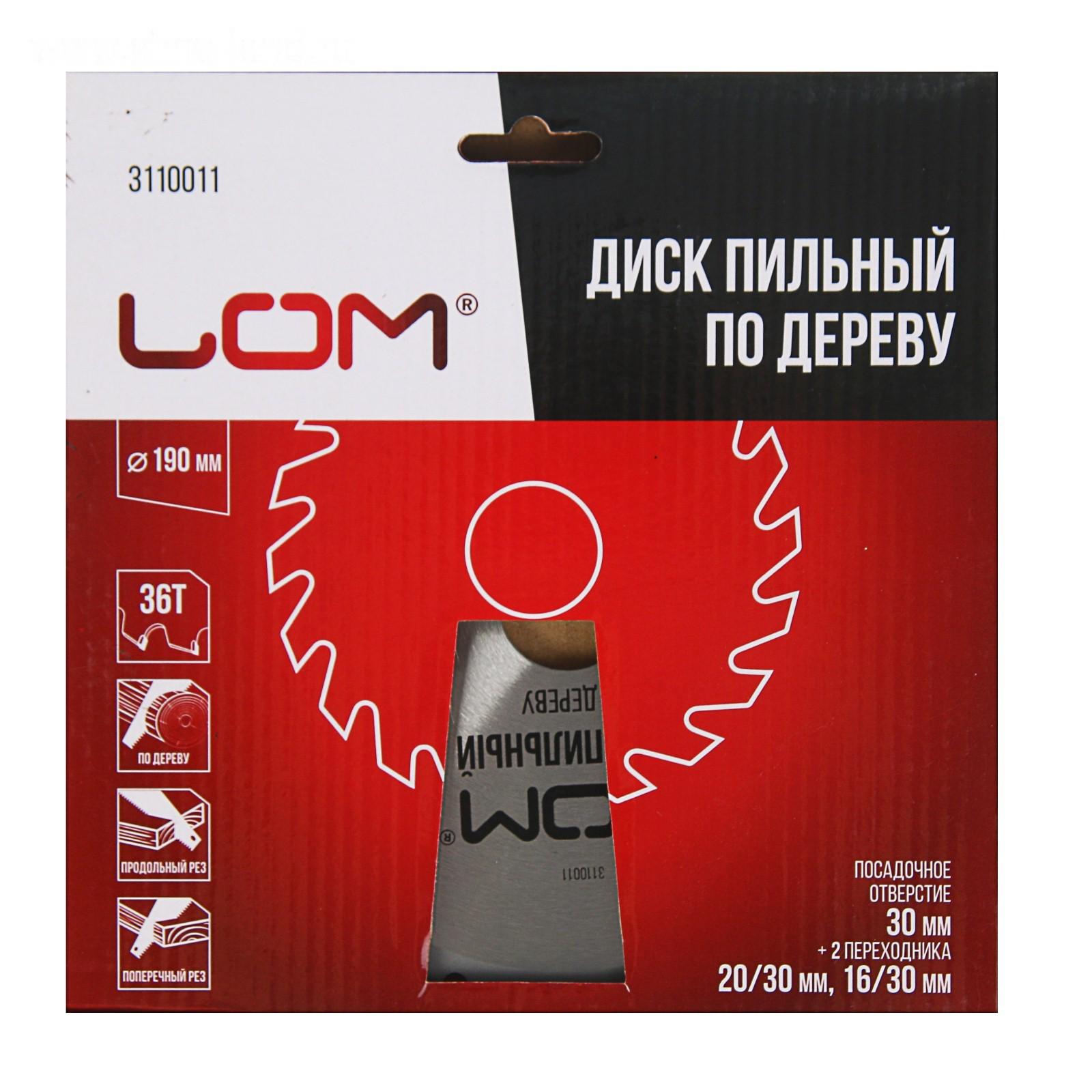 Диск пильный по дереву ЛОМ, стандартный рез, 190 х 30 мм (кольца на 20, 16), 36 зубьев
