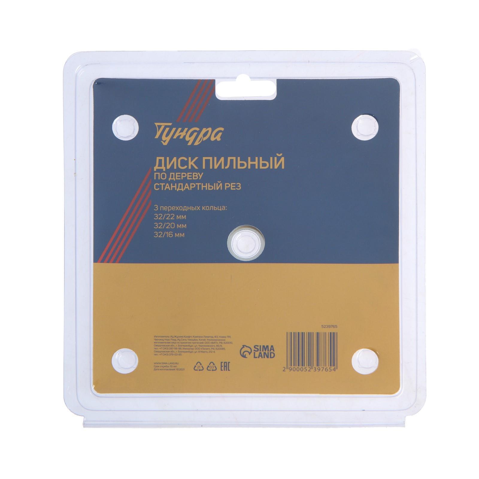 Диск пильный по дереву ТУНДРА, стандартный рез, 160 х 32 мм (кольца на 22,20,16), 36 зубьев