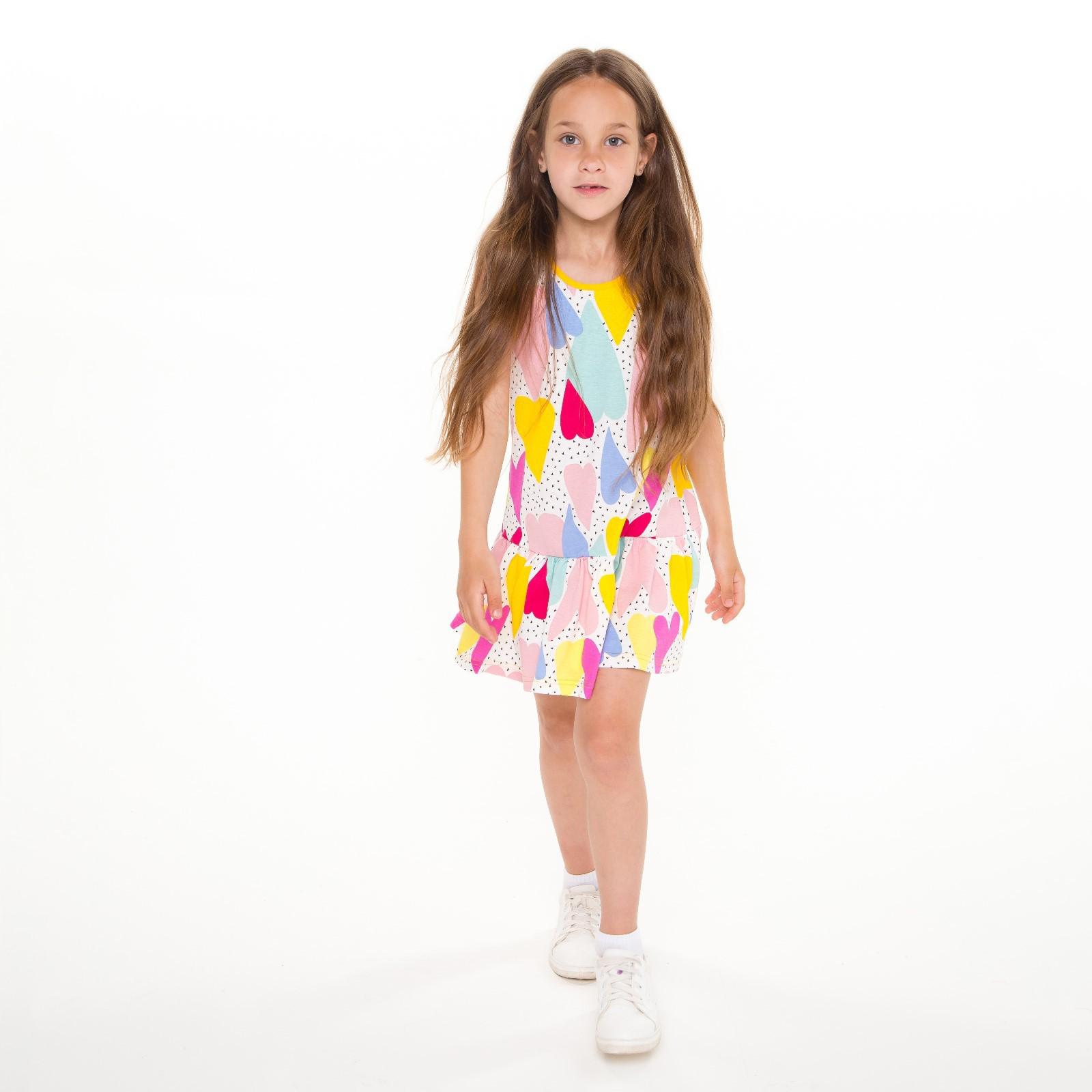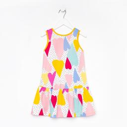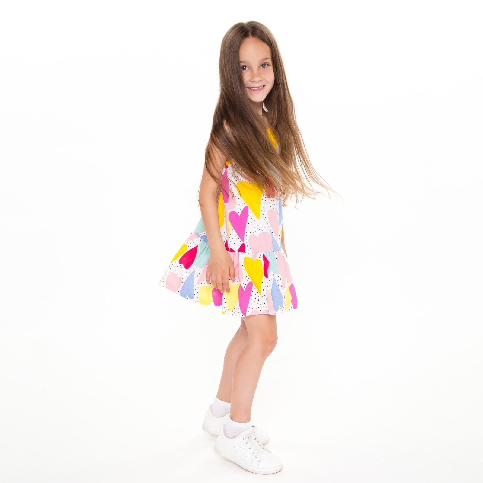 Платье для девочки, цвет белый/сердечки, рост 98 см