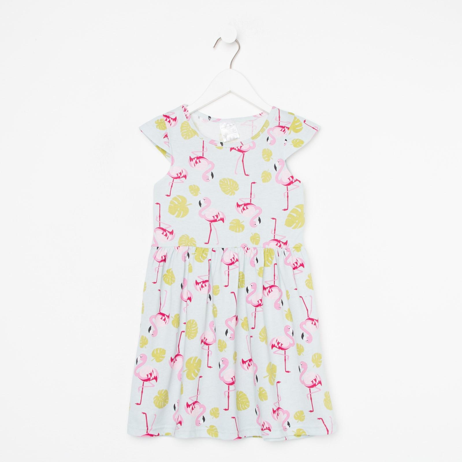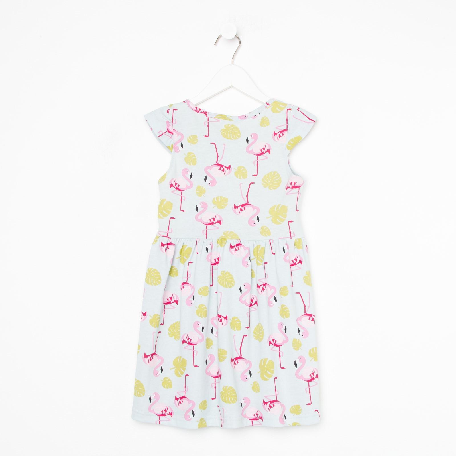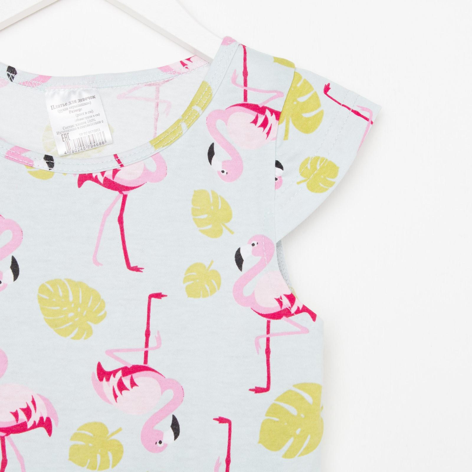 Платье для девочки, цвет голубой, принт фламинго, рост 98-104 см