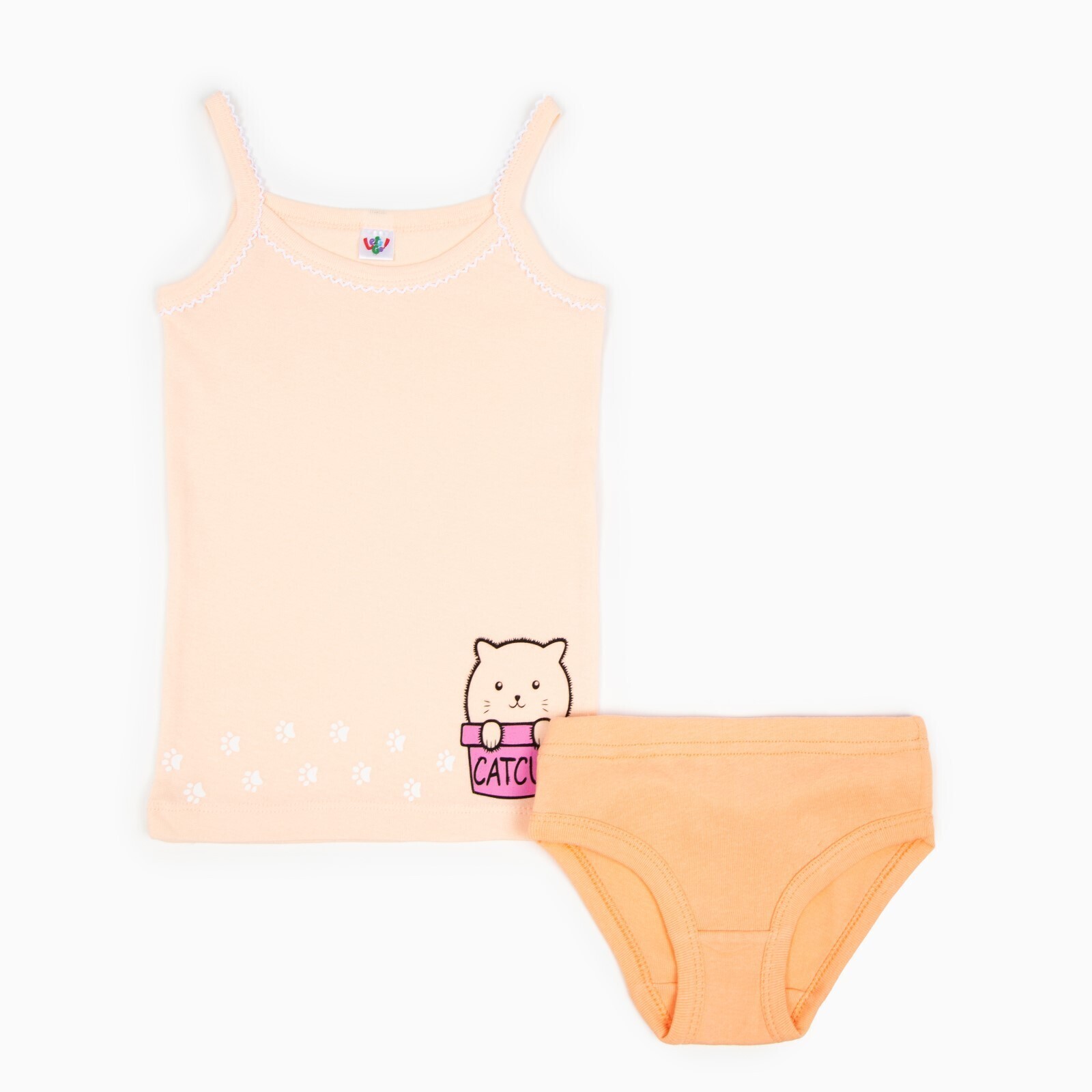 Комплект: майка и трусы для девочки, рост 98-104 см, цвет светло - персиковый/персиковый