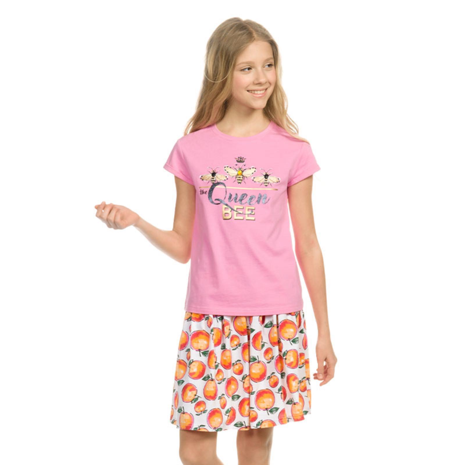 Комплект из футболки и юбки для девочек, рост 146 см, цвет розовый
