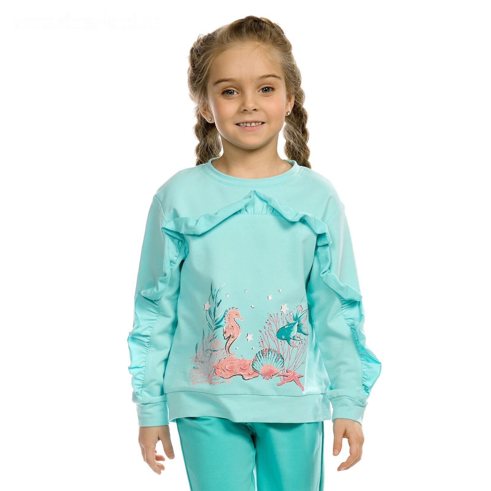 Комплект из толстовки и брюк для девочки, рост 104 см, цвет бирюза