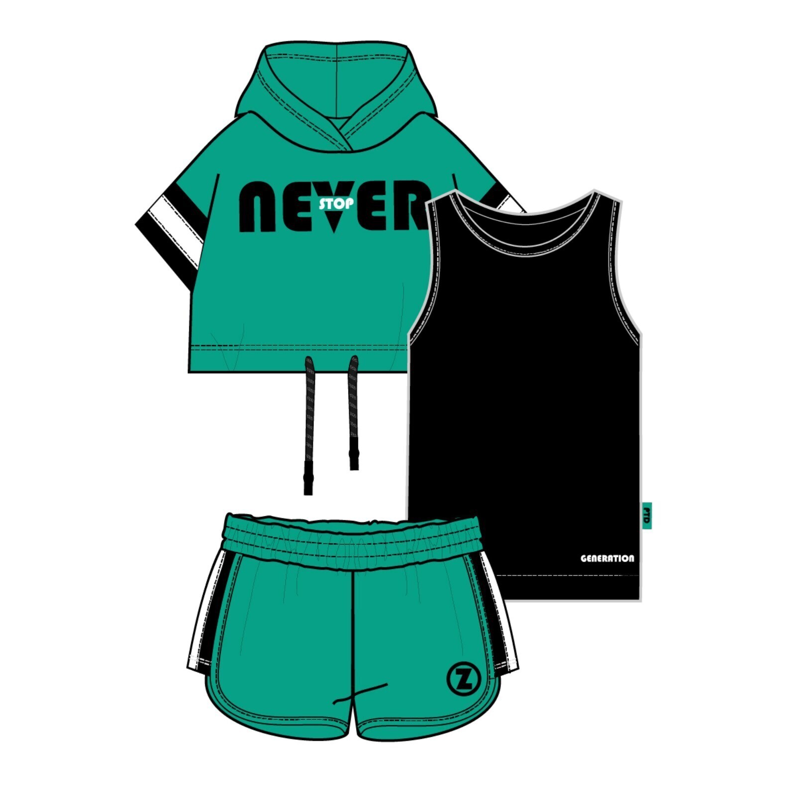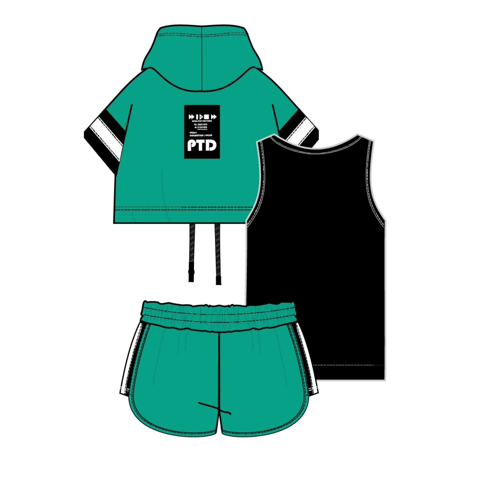• Составляющие набора Майка, Футболка, Шорты