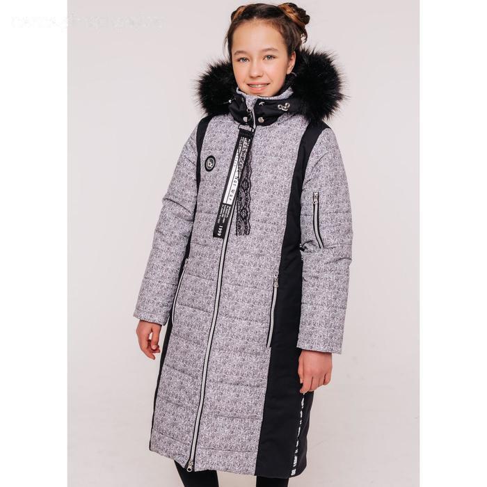 Пальто для девочки «Паула», рост 164 см, цвет чёрно-серый