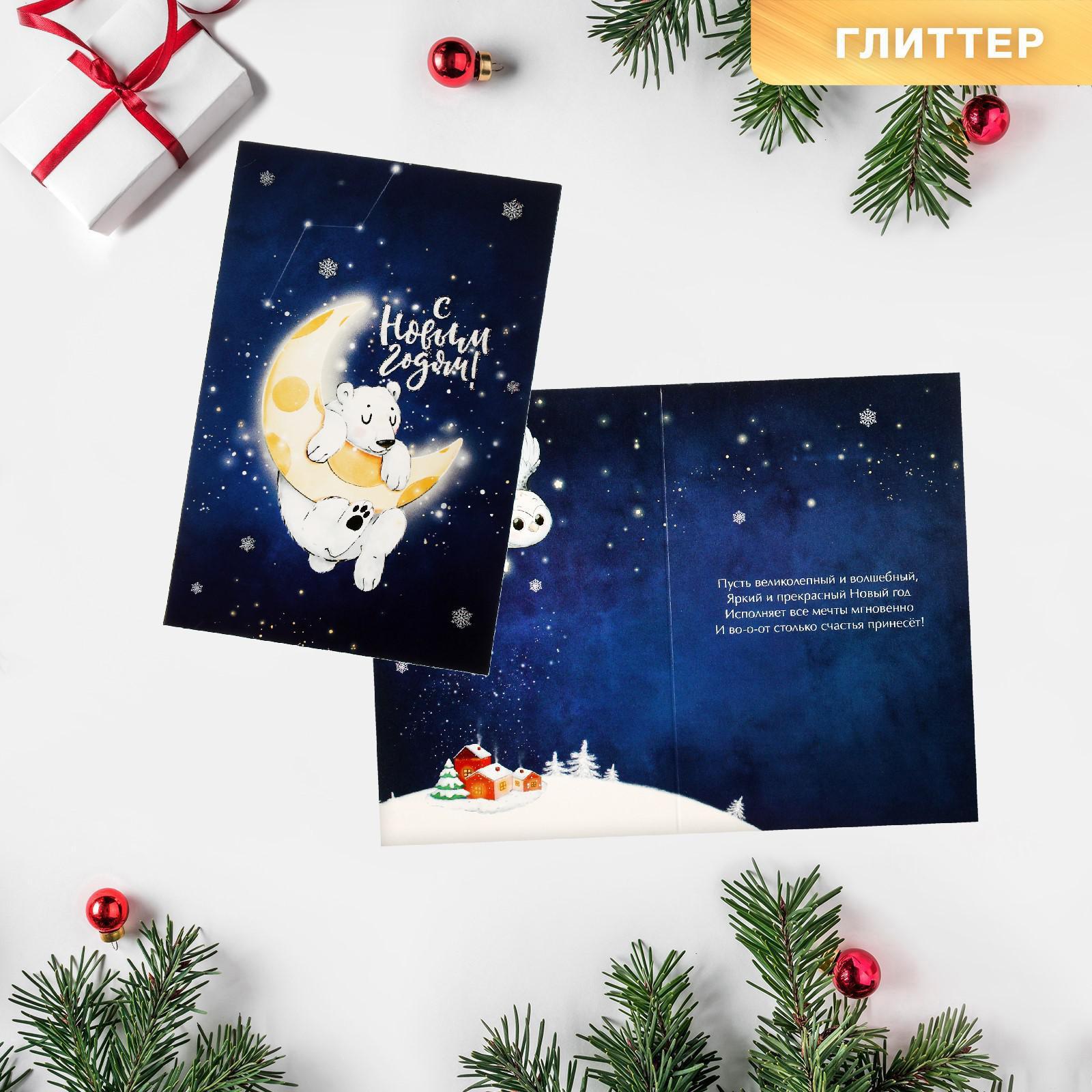 Открытка «Новогодняя луна», глиттер, 12 × 18 см