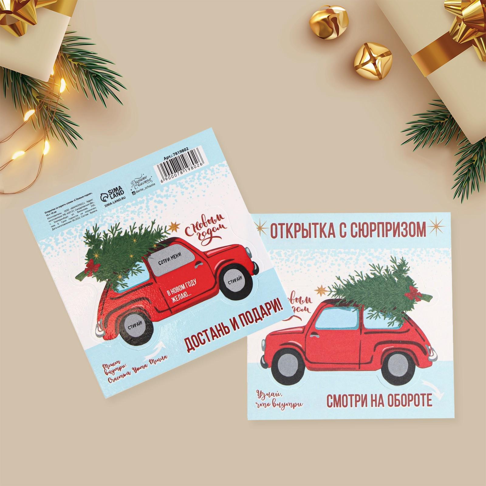 Открытка со скретч слоем «С Новым годом», машина, 10 × 10 см