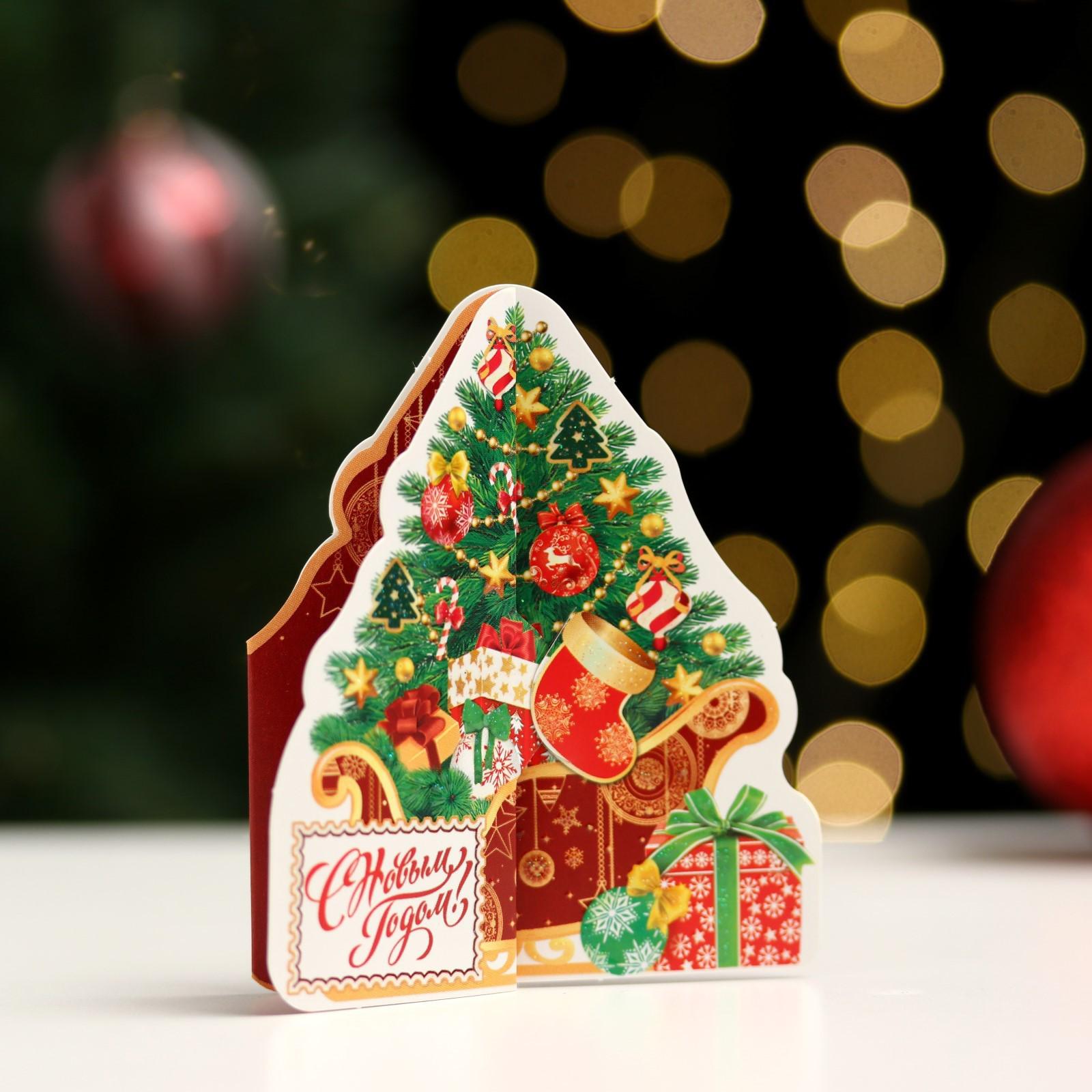 Мини-открытка "С Новым Годом!" термография, сани, 16х10 см