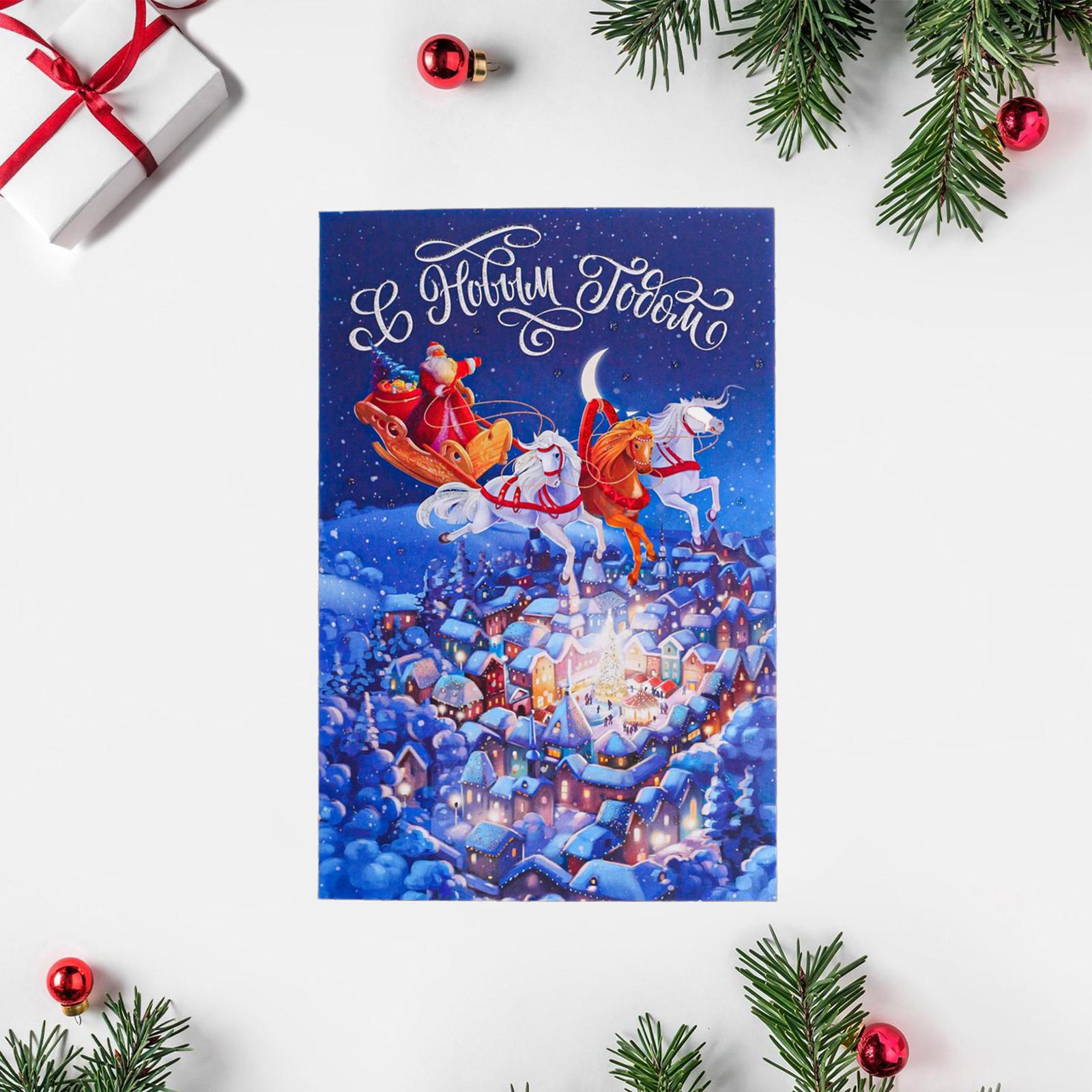 Открытка "С Новым Годом!" глиттер, тройка, 12 х 18см