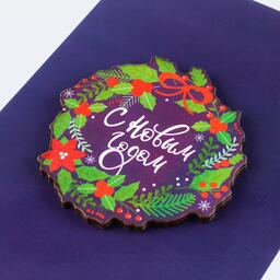 Открытка с деревянным элементом «С Новым годом!» венок, 10 × 15 см