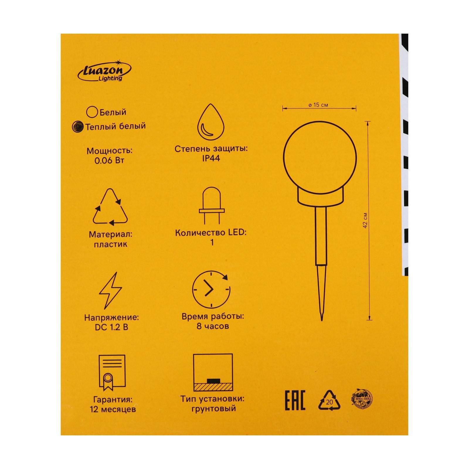 Садовый светильник на солнечной батарее «Средний шар», 15 × 38 × 15 см, 4 LED, свечение тёплое белое