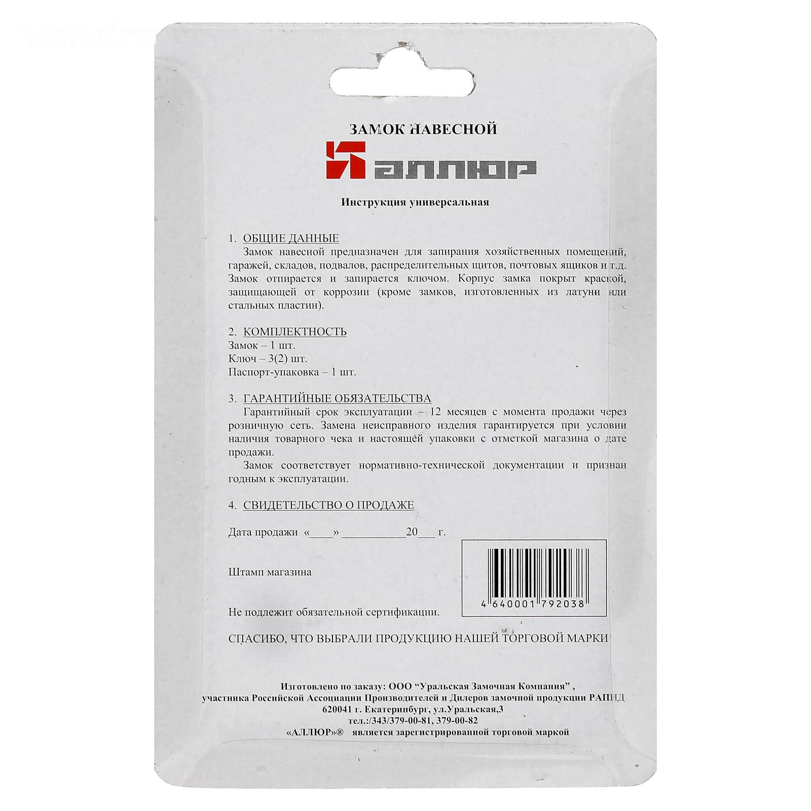 Замок навесной "АЛЛЮР" ВС2-4С, дужка d=10 мм