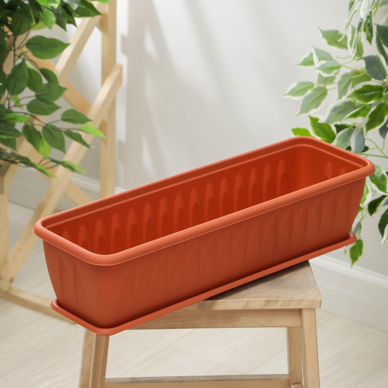 Ящик балконный «Алиция», 60 см, с поддоном, цвет терракотовый