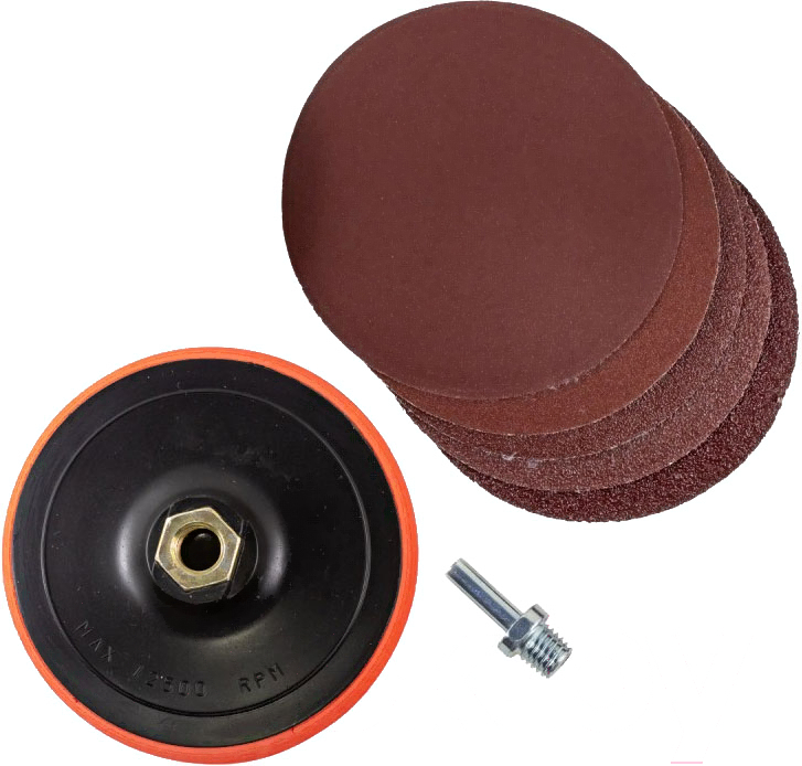 - Дополнительная комплектация хвостовик, шлифлист (Р40/60/80/120/240)