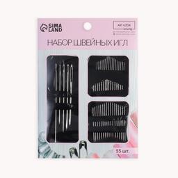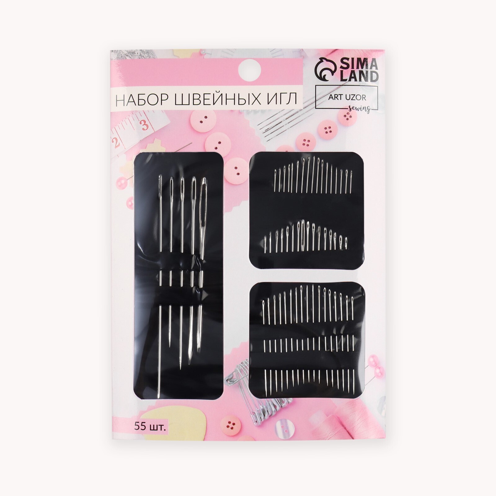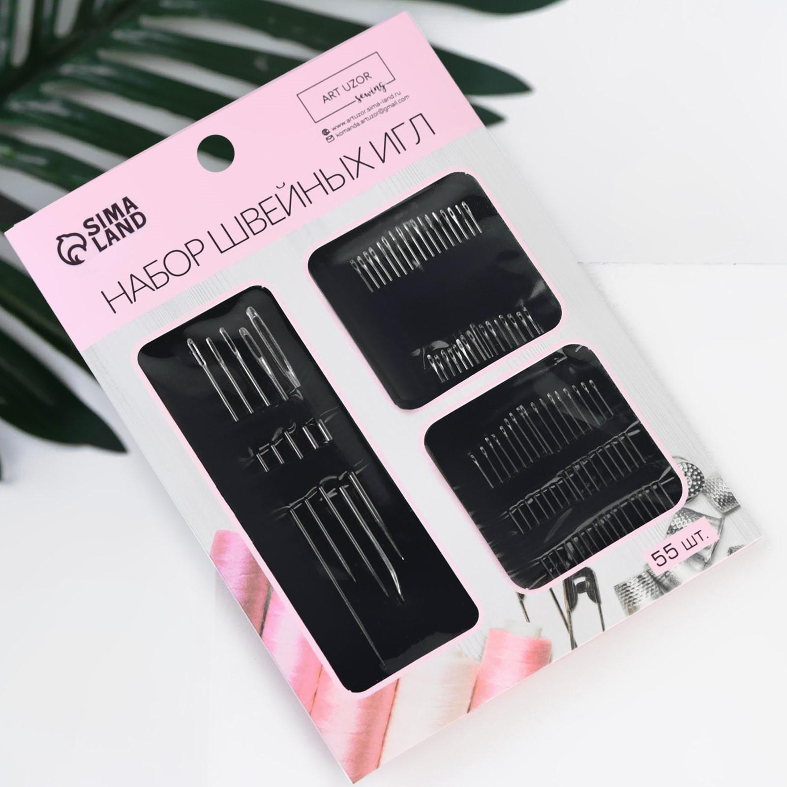 Иглы швейные, d = 0,5 / 0,7 / 0,8 / 1 / 1,3 / 2 мм, 3,8 - 9 см, 55 шт