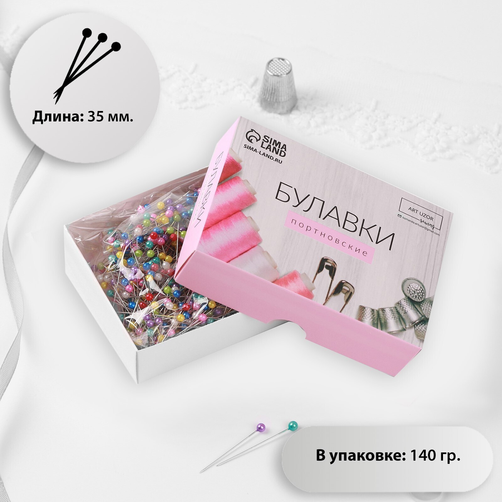 Булавки портновские, 35 мм, d = 0,5 мм, 140 гр, цвет разноцветный