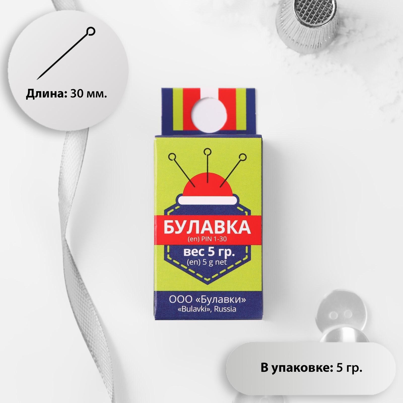 Булавки портновские, 30 мм, 5 гр, цвет серебряный