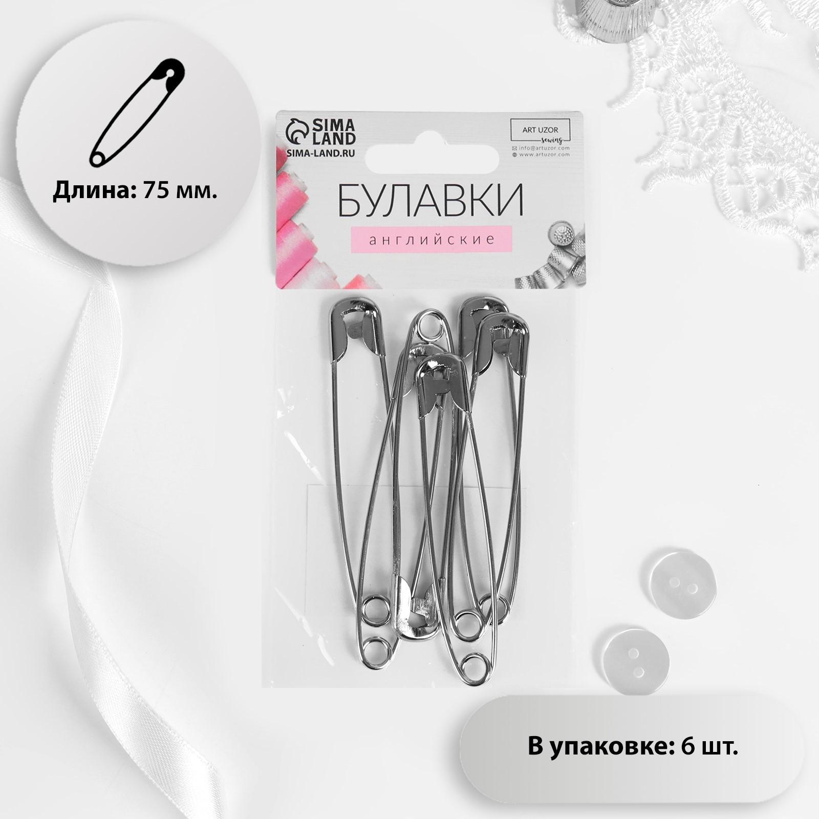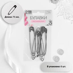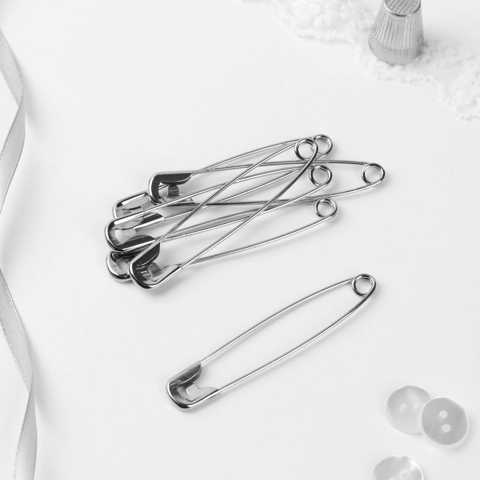 Булавка английская, 75 мм, 6 шт, цвет серебряный
