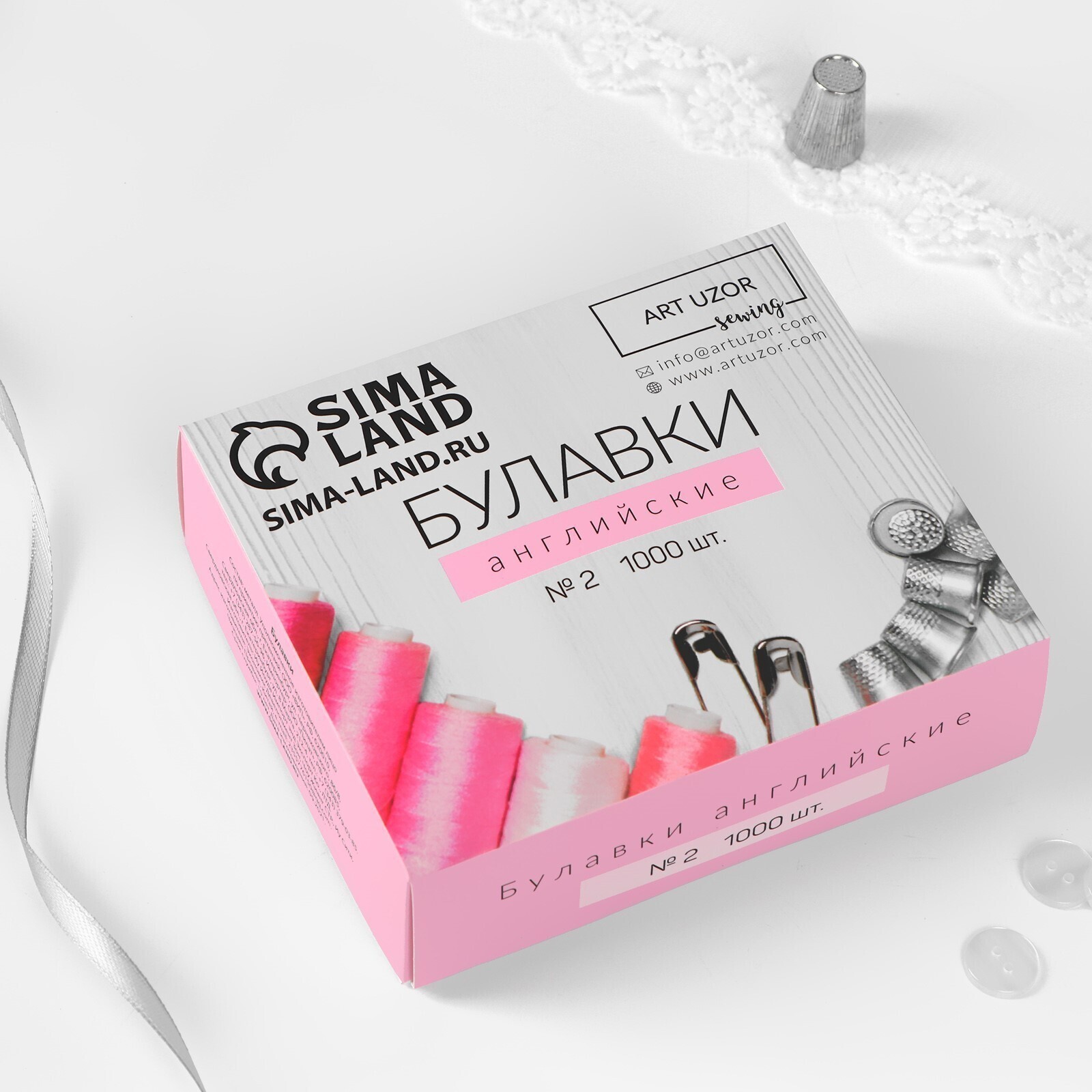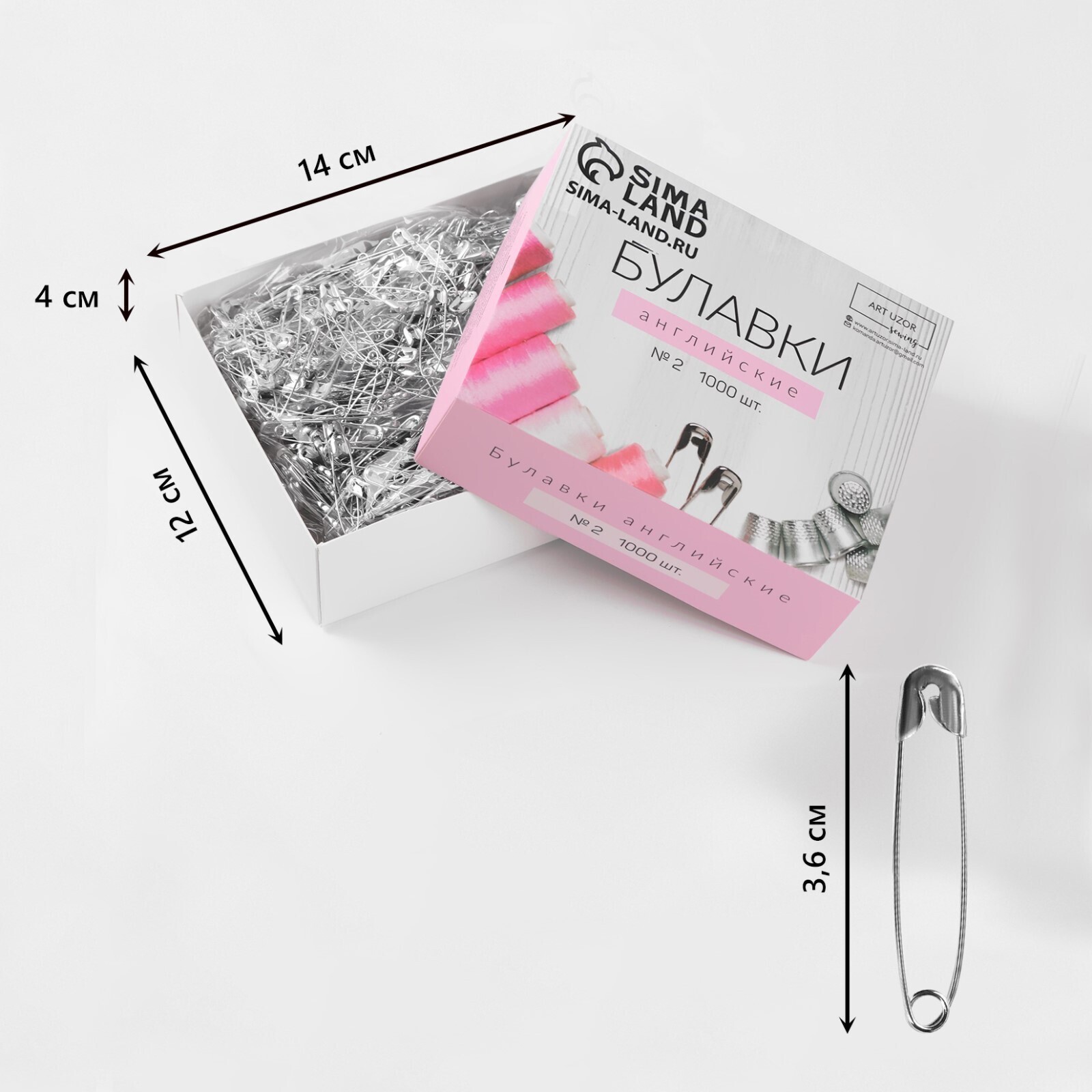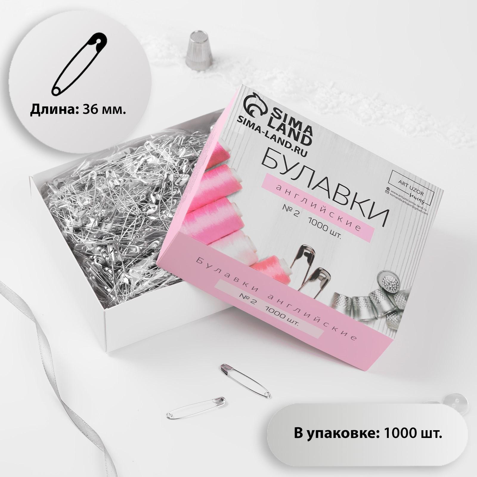 Булавки английские №2, 36 мм, 1000 шт, цвет серебряный